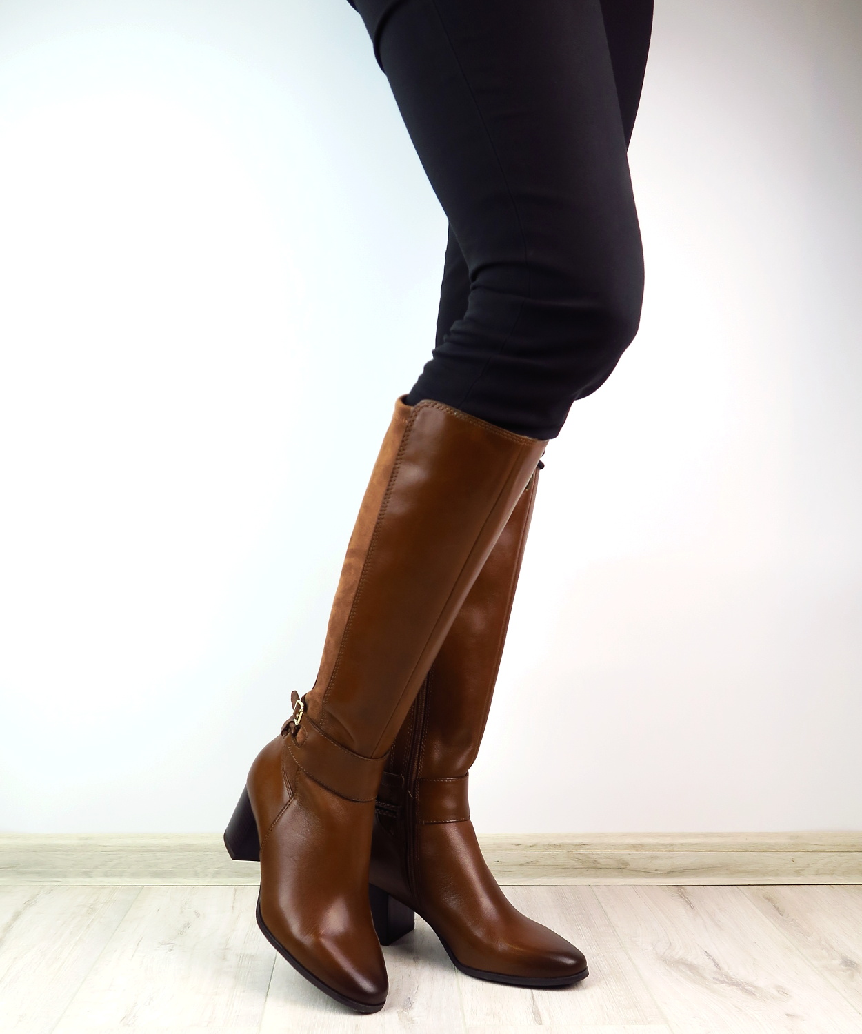 Dámske štýlové čižmy od nemeckej značky CAPRICE. Model v krásnej hnedej farbe. ktorá je veľmi obľúbená. Zvršok vyrobený z prírodnej kože. Pohodlie pri chôdzi Vám zaistí nízky podpätok a vnútorná mäkká stielka. Veľkou výhodou je elastický materiál v zadnej časti, ktorý pekne sadne aj na hrubšie lýtka. Pekným doplnkom je aplikácia v okolí členku. Čižmy, s ktorými budete určite spokojná.