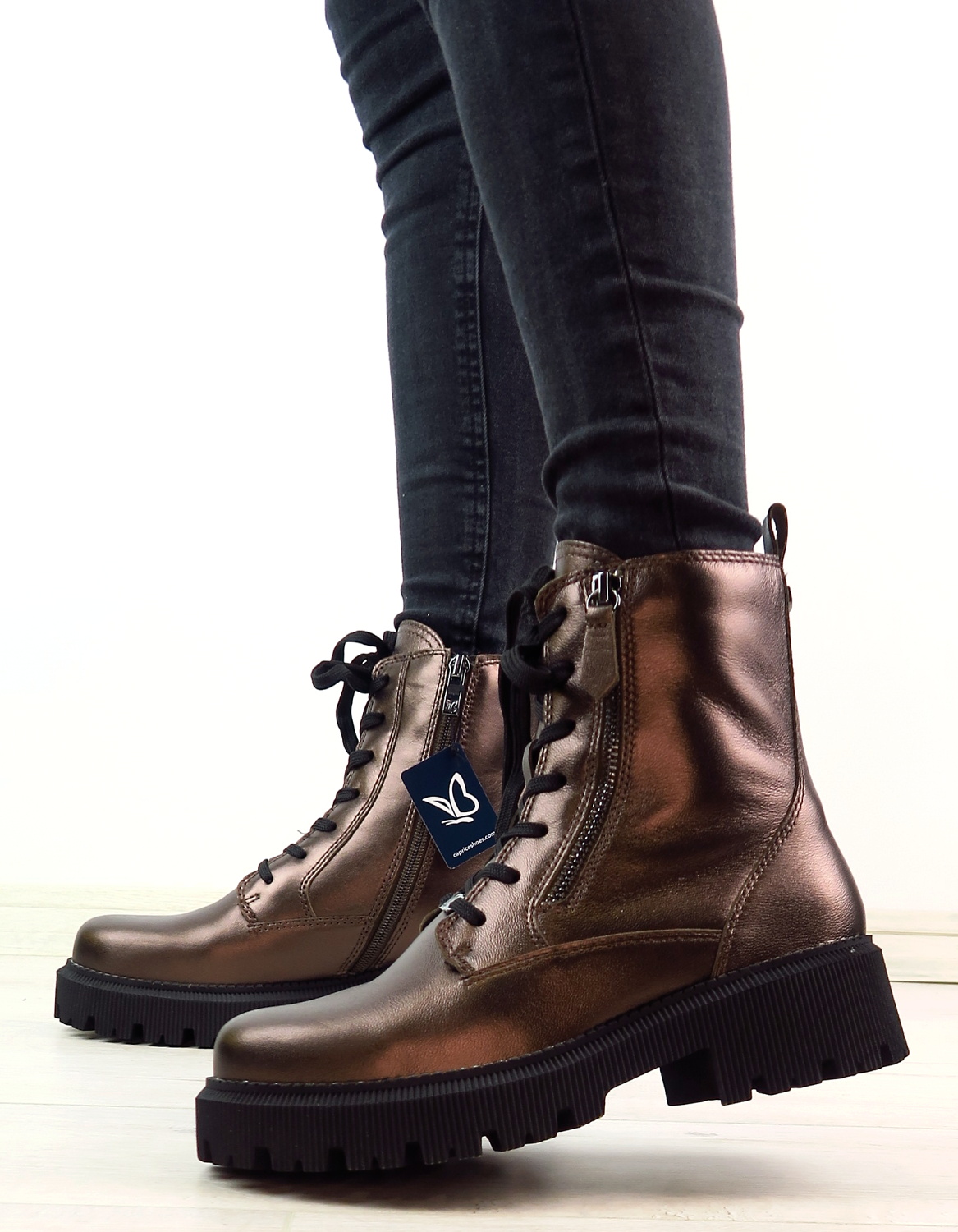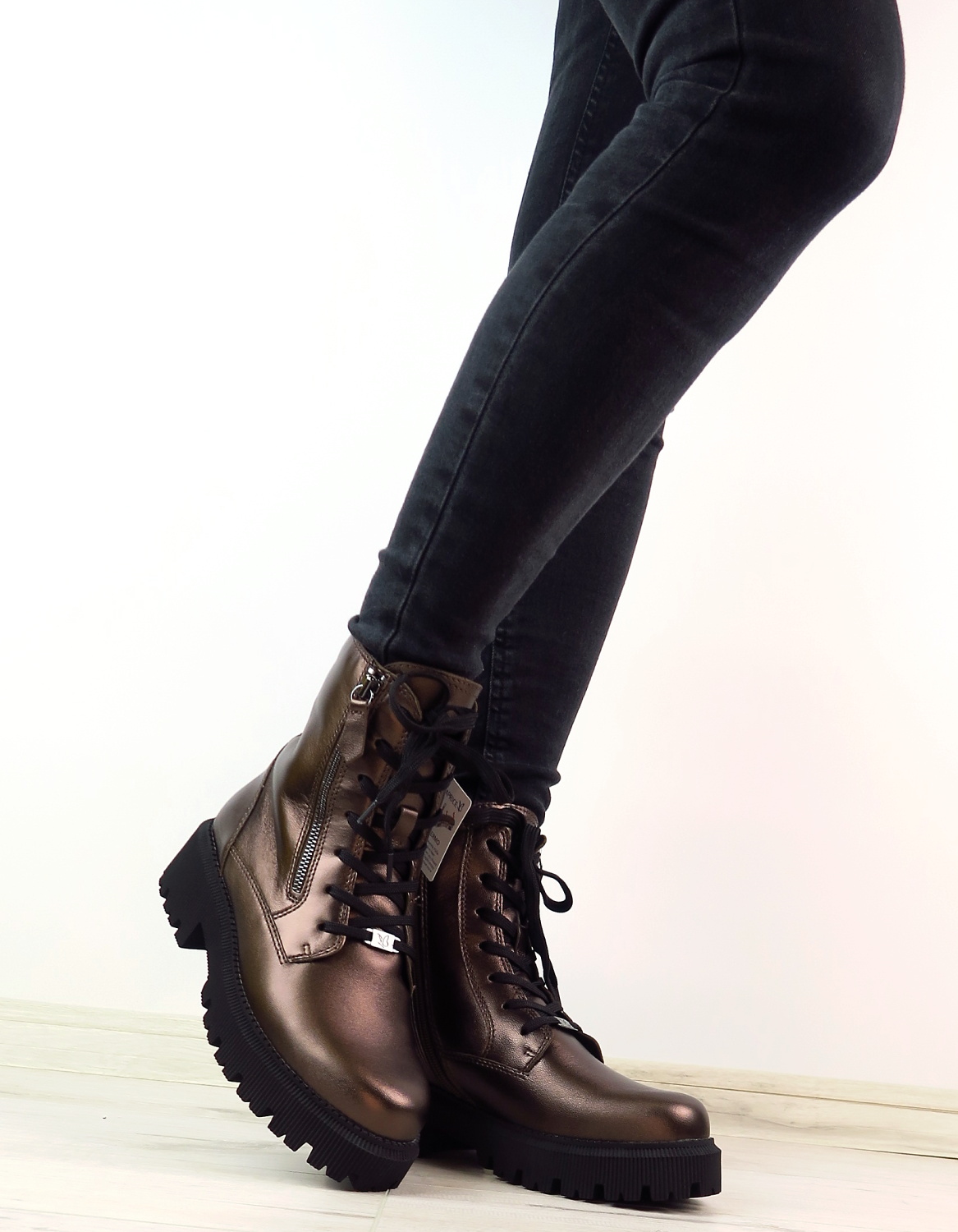 Štýlové dámske workery kvalitnej nemeckej značky CAPRICE. Masívna podrážka nielenže pôsobí moderne, ale zároveň poskytuje stabilitu a komfort pri každom kroku. Model v hnedej farbe s jemným odleskom. Zvršok vyrobený z prírodnej kože. Výhodou sú bočné zipsy, ktoré Vám uľahčia obúvanie, zatiaľ čo šnurovanie sa prispôsobí na každé chodidlo. Vhodné na zimné obdobie, a to vďaka TERMO vložke a hrubej kožušine vo vnútri.