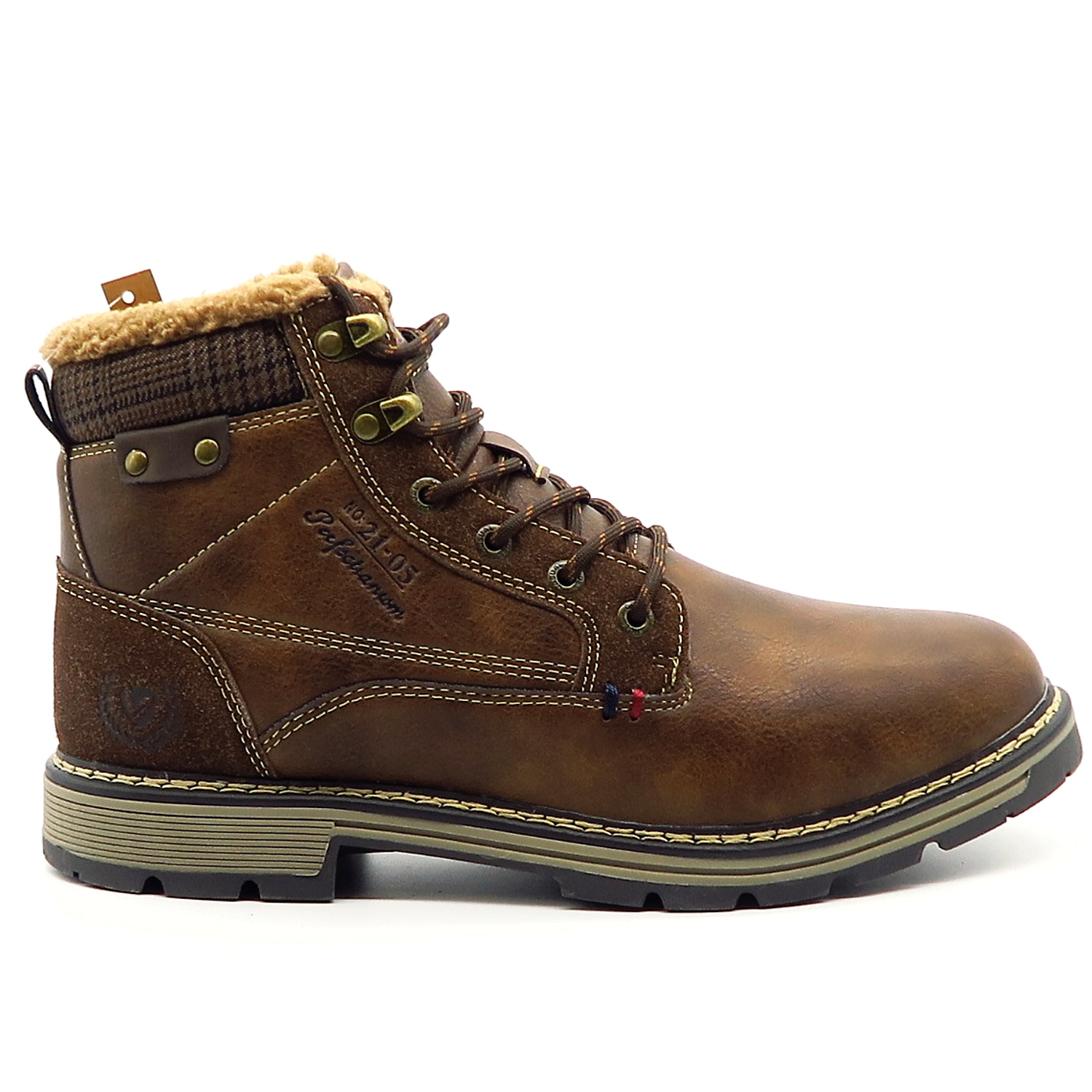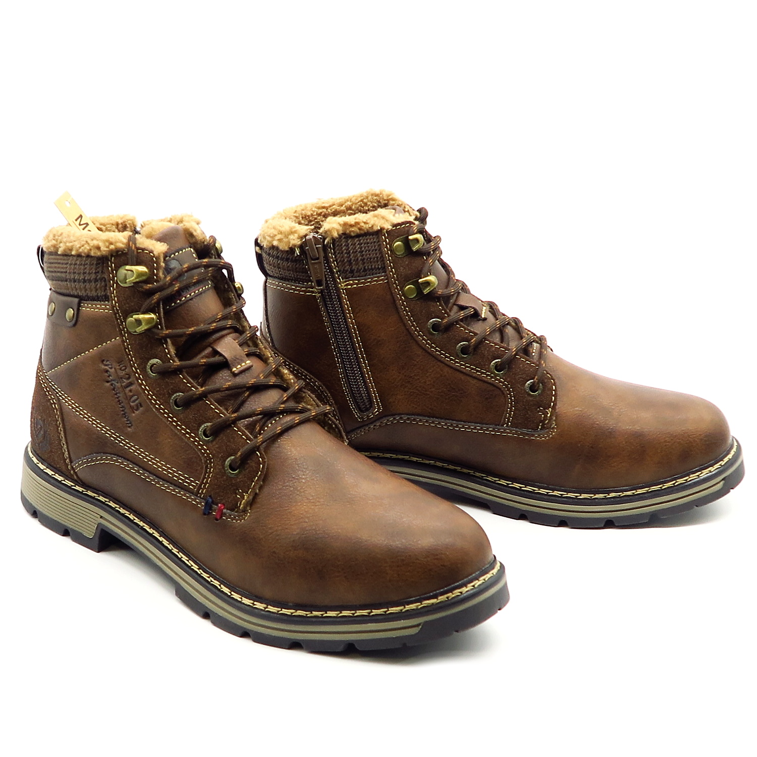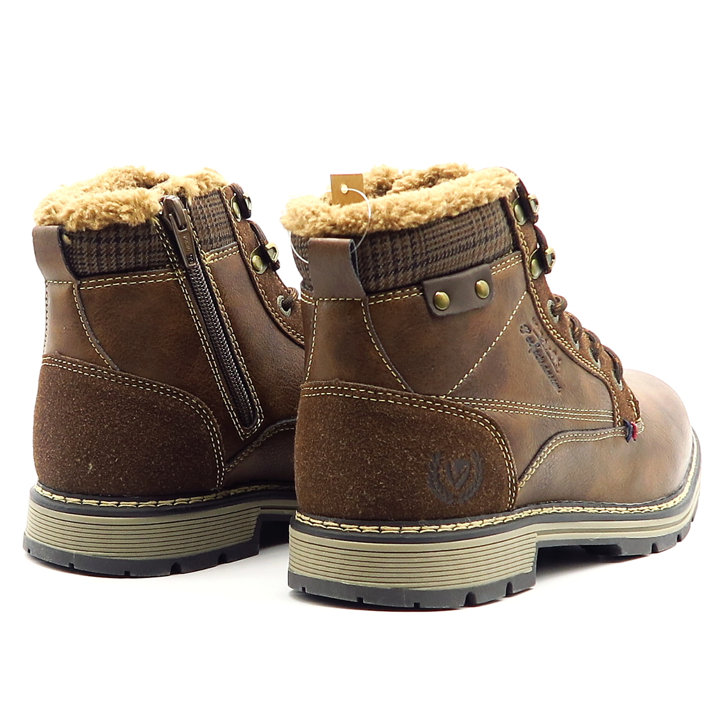Pánske členkové topánky značky MCBRAUN. Zvršok tvorí ekologická koža. Štýlové a univerzálne topánky ideálne na jeseň a zimu. Zvršok siaha po členky, čo zaisťuje väčšiu stabilitu a ochranu pred chladom. Zapínanie – šnurovanie pre pevné utiahnutie, ale aj bočný zips pre ľahšie obúvanie. Vnútro zateplené kožušinou.
