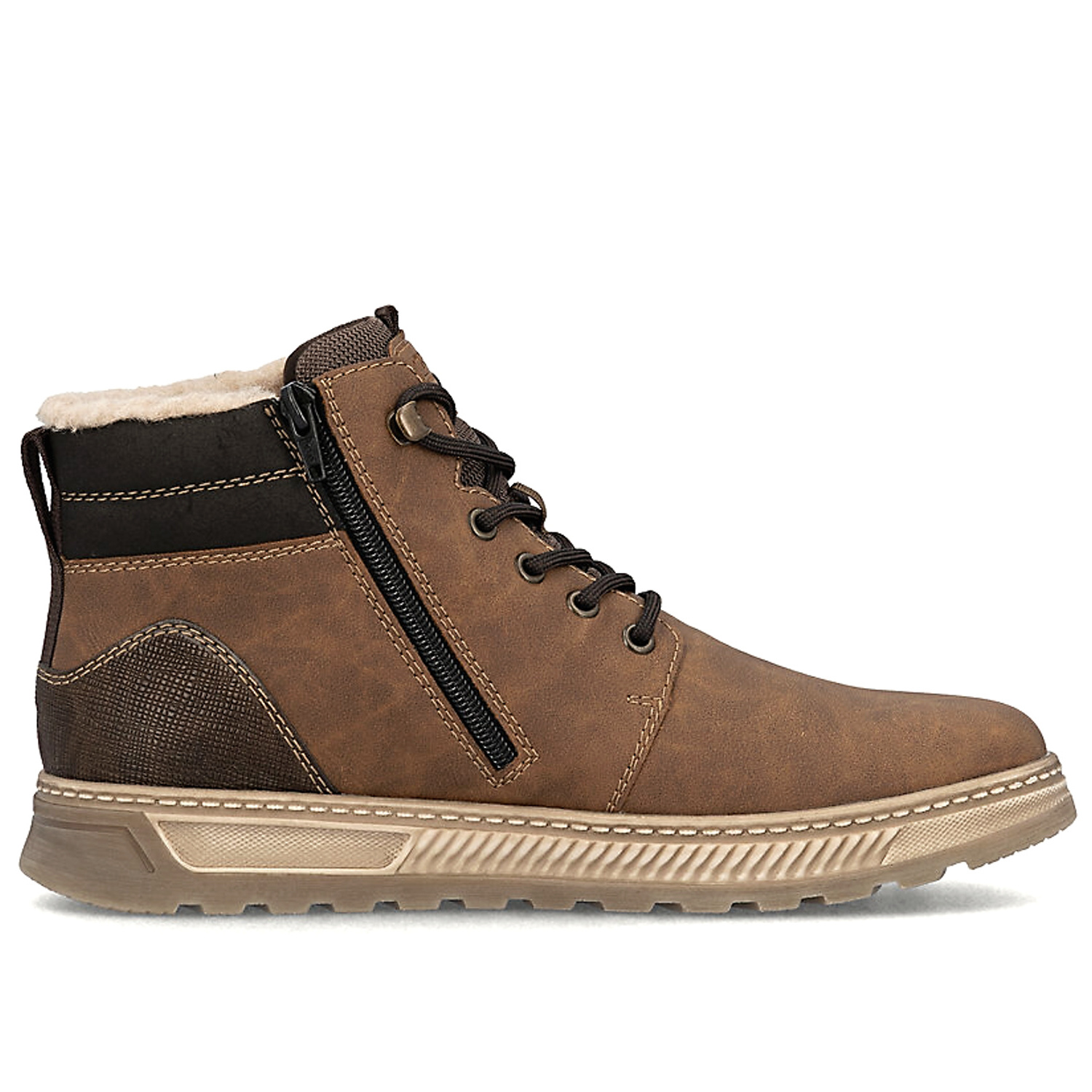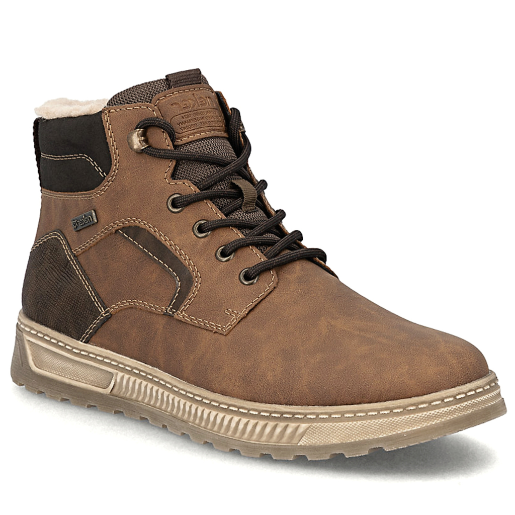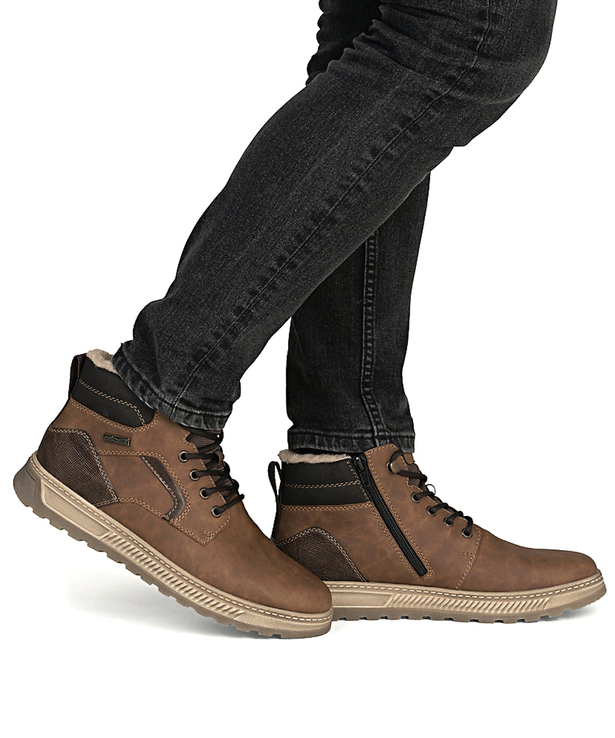 Pánske členkové topánky nemeckej značky RIEKER. Model v hnedej farbe. Zvršok tvorí ekologická koža. Model vhodný na zimu, vďaka teplej kožušine vo vnútri. Zapínanie – šnurovanie, ale aj zips. Topánky vhodné na širšie chodidlá. TEX membrána zaručí pocit sucha. Vnútorná stielka s technológiou ANTISTRESS Vám zaručí komfortný krok.