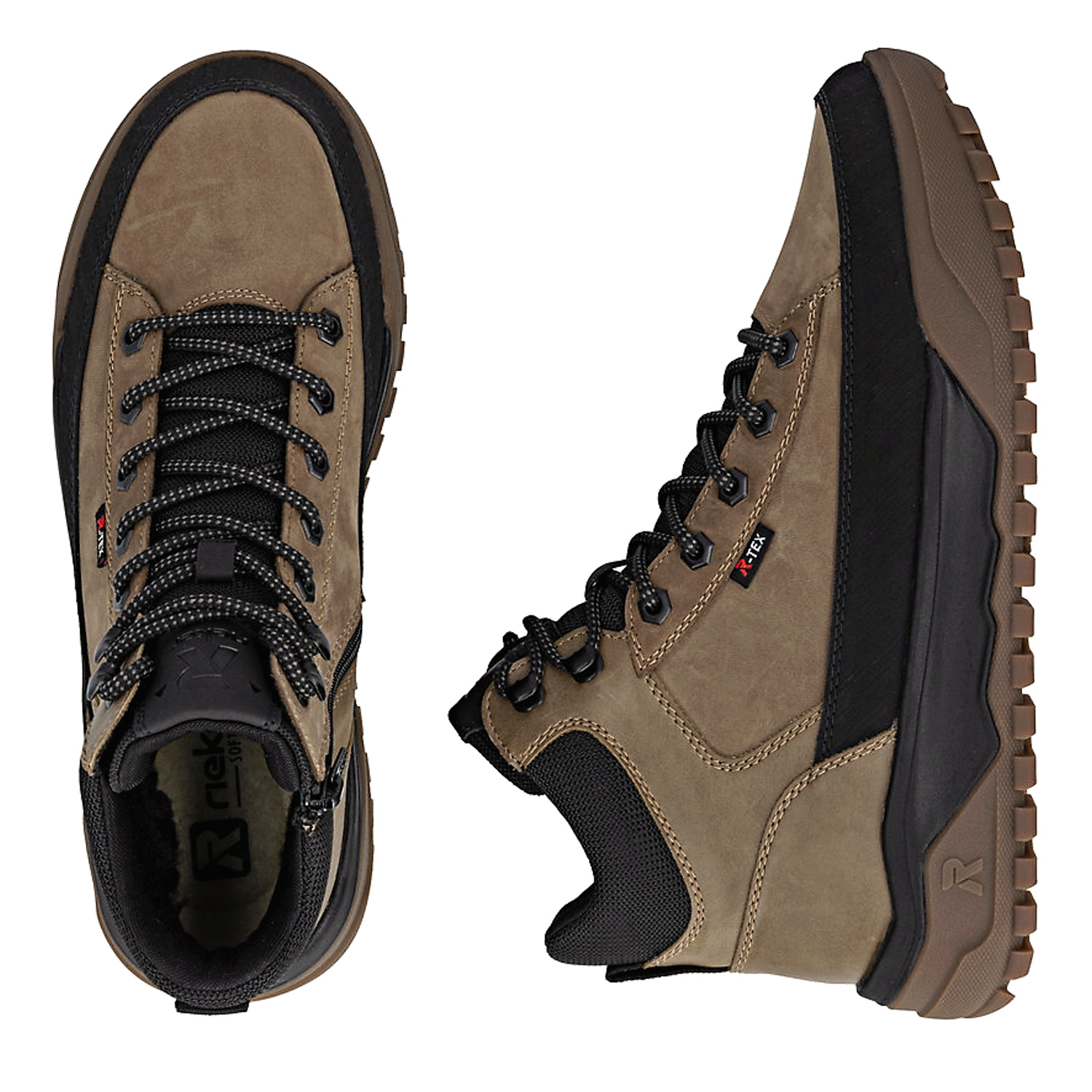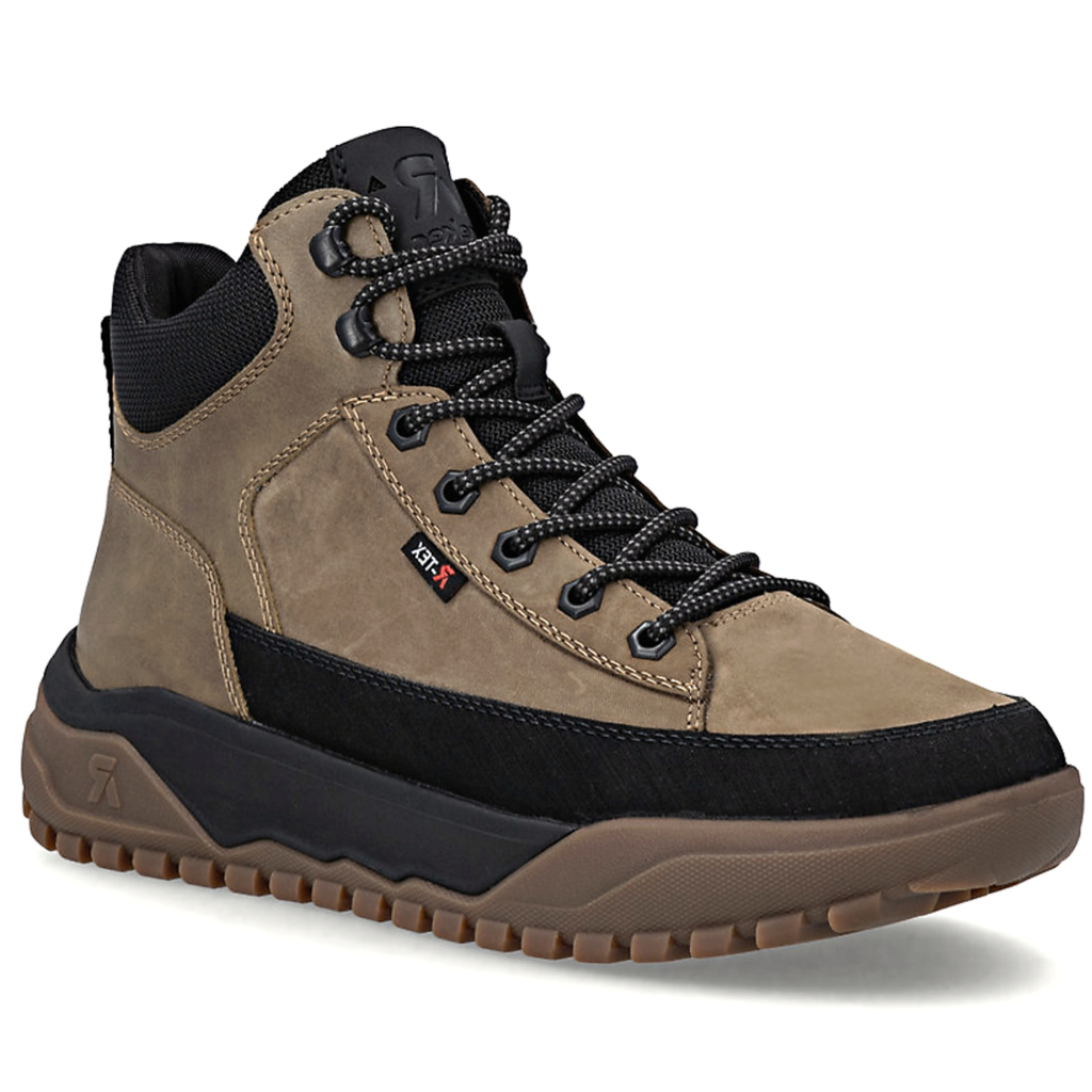 Pánske členkové topánky od nemeckej značky RIEKER. Model v hnedej farbe. Zvršok s nepremokavou membránou vás spoľahlivo ochráni v každom počasí, zatiaľ čo nápaditá kombinácia materiálov dodá vášmu outfitu štýlový nádych. Komfortný krok Vám zaistí pamäťová stielka REVOLUTION SOFT. Zateplené sú hrubou kožušinou.