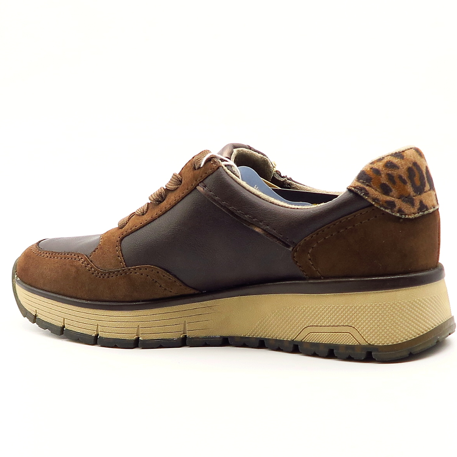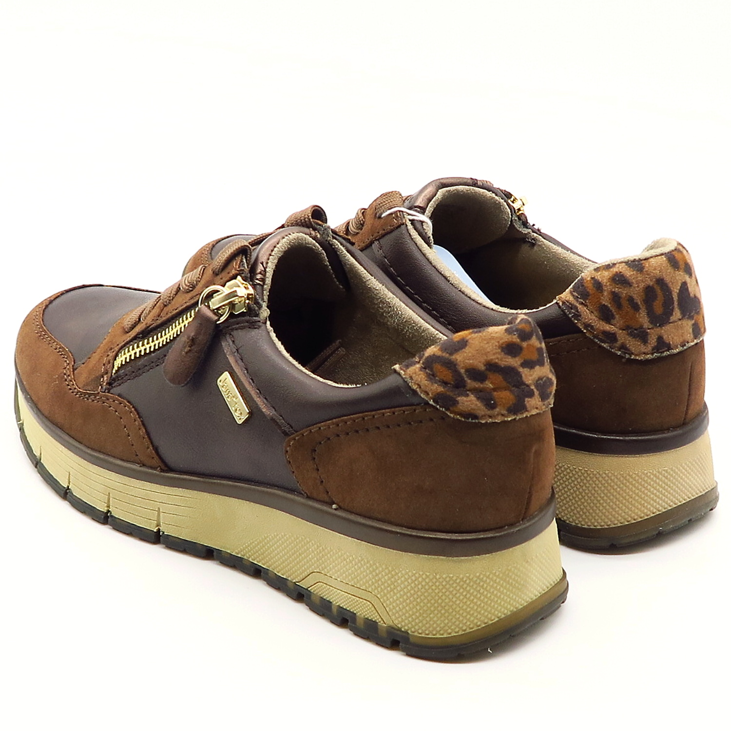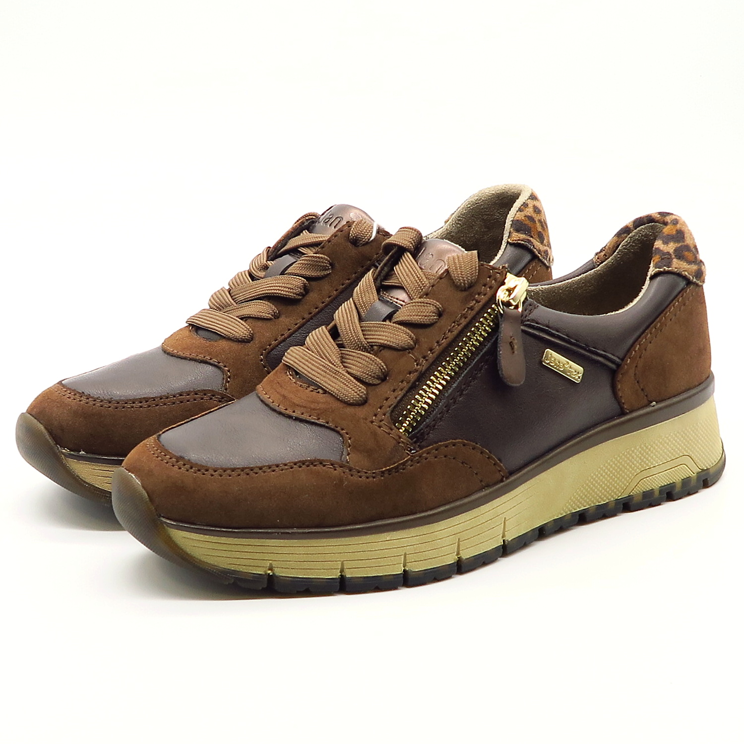 Dámske sneakersy od nemeckej značky JANA. Topánky v krásnej hnedej farbe so zvieracím motívom na päte.. Zvršok vyrobený z ekologickej kože. Na bočnej strane všitý zips, ktorý uľahčí obúvanie a zároveň je aj pekným doplnkom. Komfortný model na každodenné nosenie. Výhodou je ich mäkká pamäťová stielka SOFT LINE. TEX membrána Vám zaisti pocit sucha. Topánky vhodné na širšie chodidlo (kopyto H).