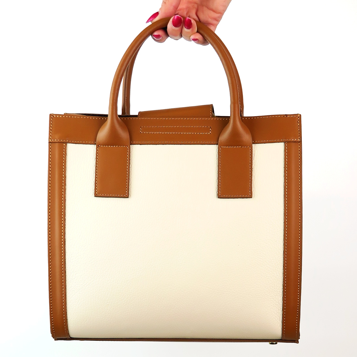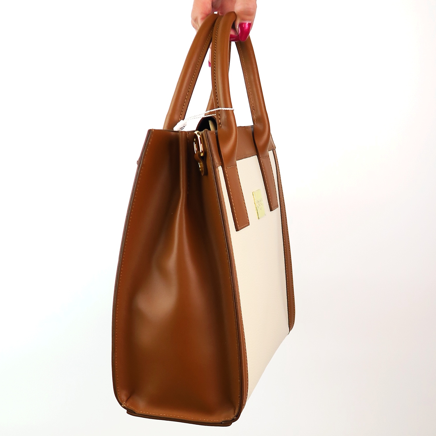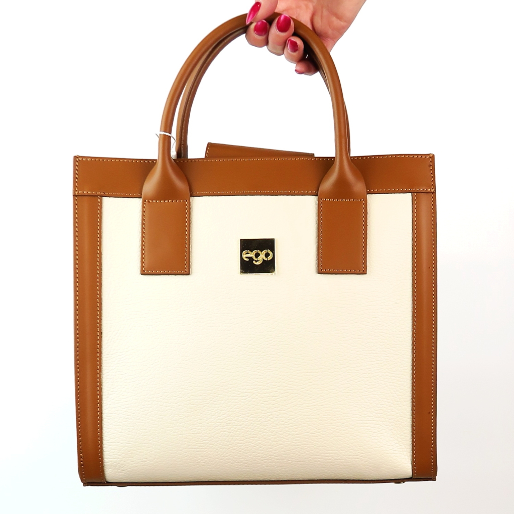 Kvalitná kabelka značky EGO. Model v béžovej farbe. Zvršok vyrobený z prírodnej kože.