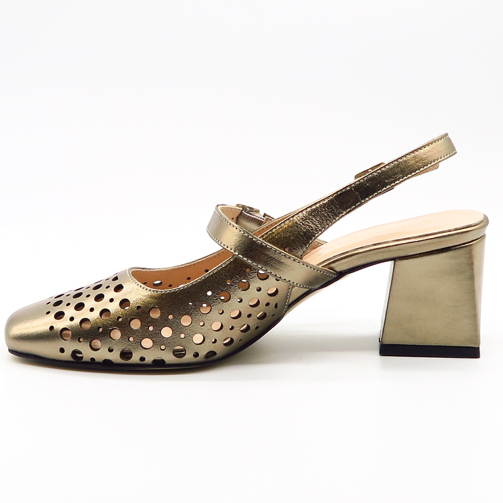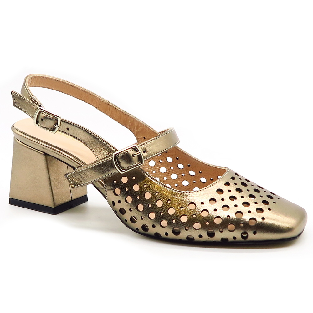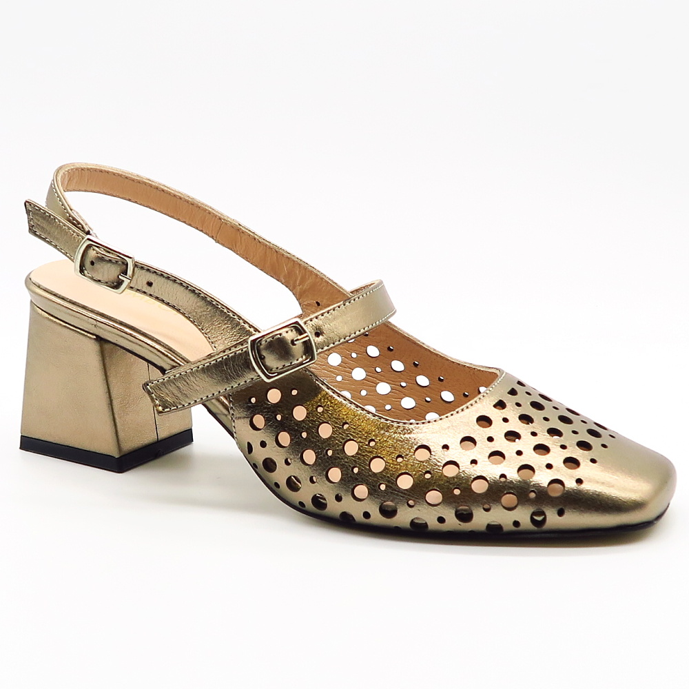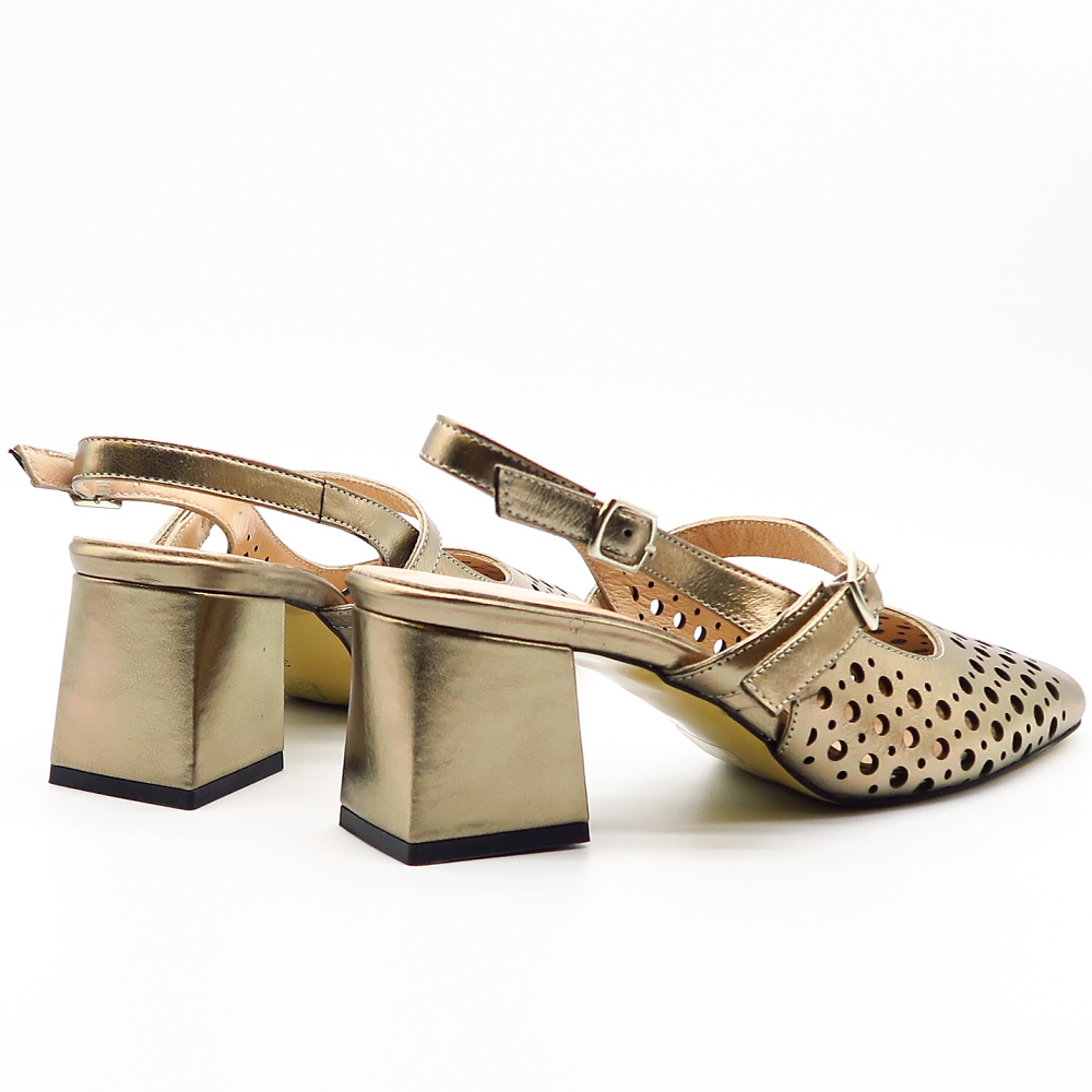 Elegantné sandále s otvorenou pätou sú dokonalým spojením štýlu a pohodlia. Perforovaný zvršok im dodáva priedušnosť počas letných dní. Pekným doplnkom je pracka na priehlavku. Kožené sandále v krásnej medenej farbe, ktorá oživí nejeden outfit. Hrubší podpätok zabezpečuje komfort pri chôdzi, zatiaľ čo mäkká stielka ponúka príjemný pocit po celý deň. Vďaka svojmu dizajnu sú ideálne na formálne aj neformálne príležitosti.