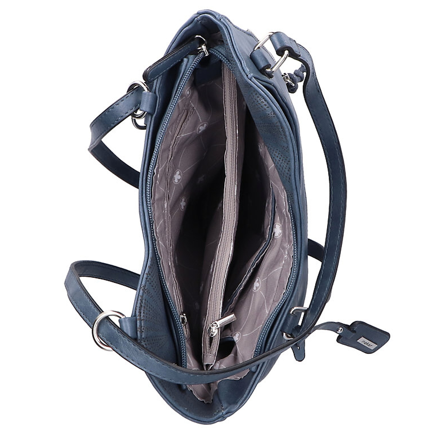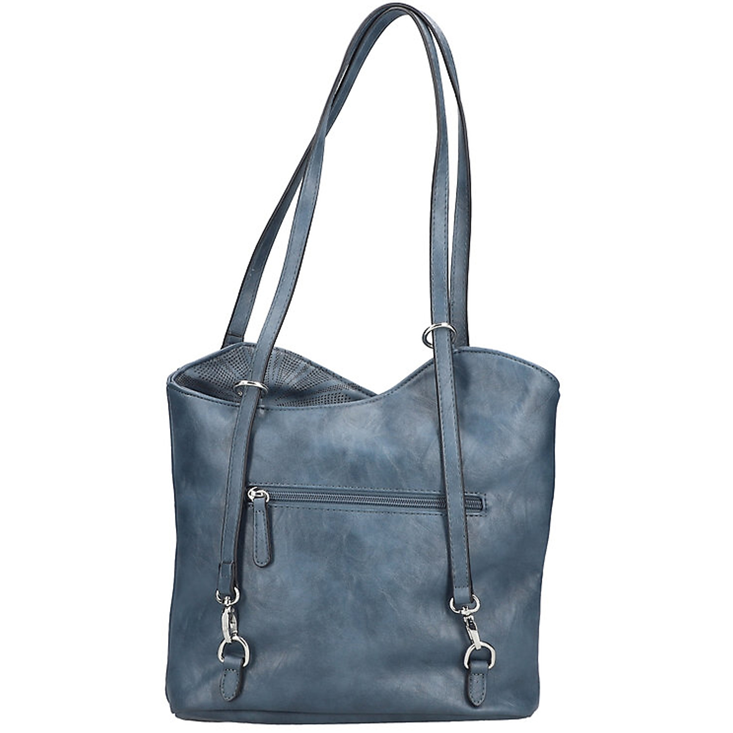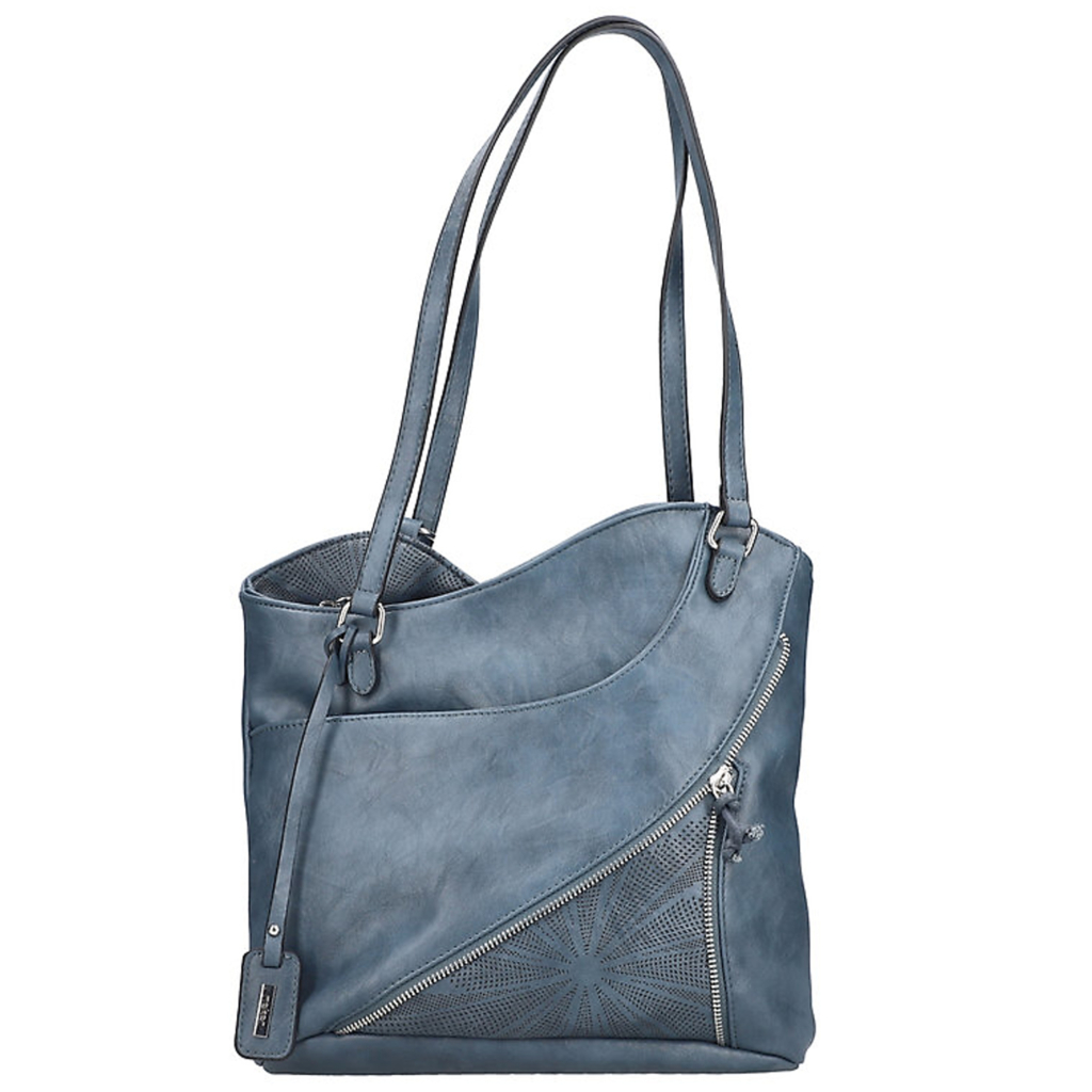 Kvalitná kabelka nemeckej značky RIEKER. Model v modrej farbe. Zvršok vyrobený z ekologickej kože. Kabelka je vybavená dvoma dlhšími popruhmi, vďaka čomu ju môžete pohodlne nosiť cez rameno alebo zvoliť variantu batohu.