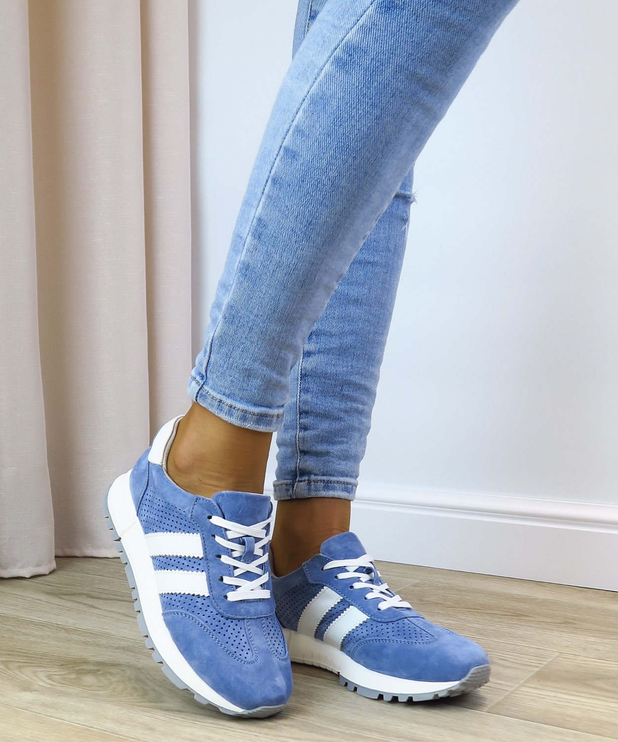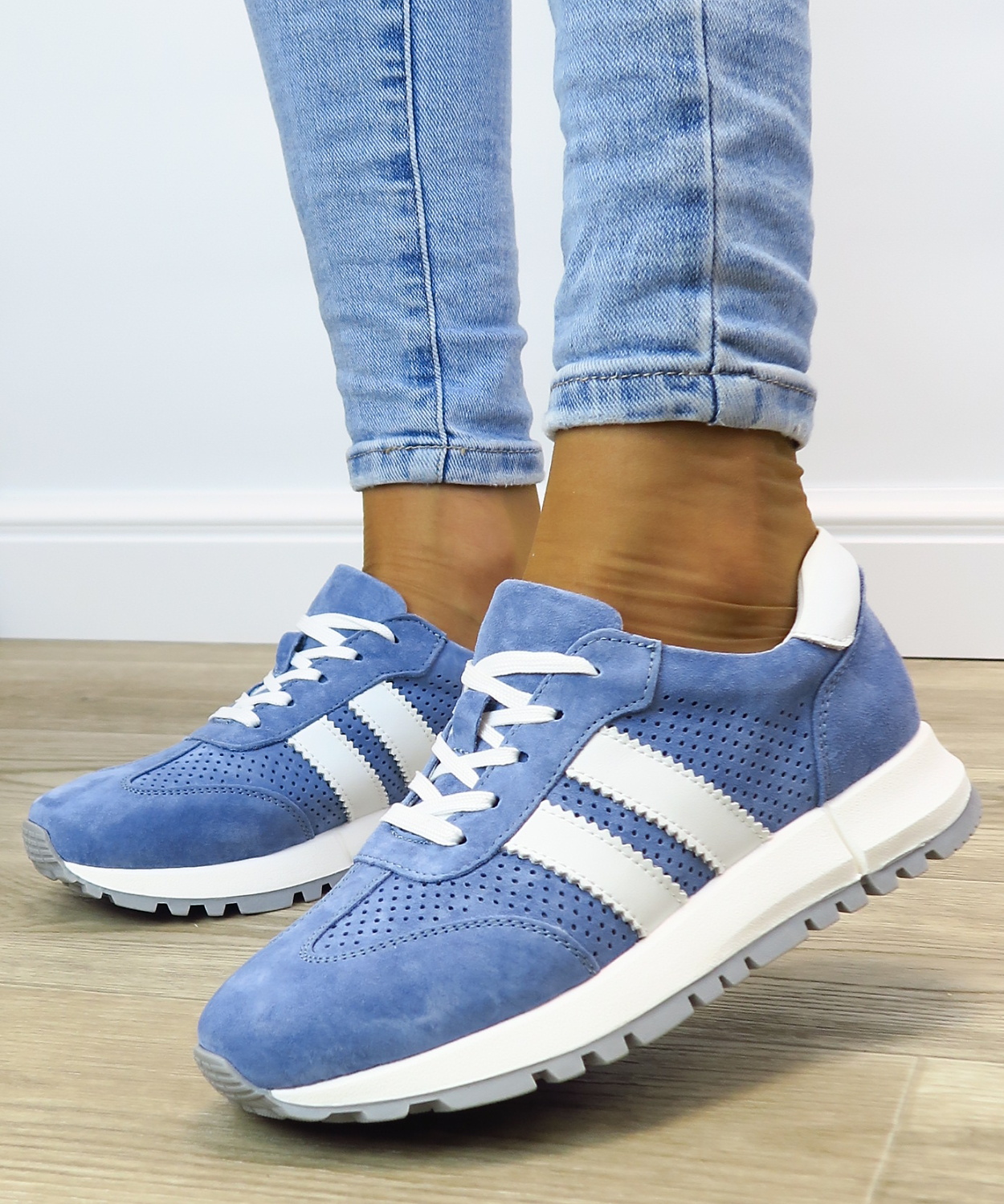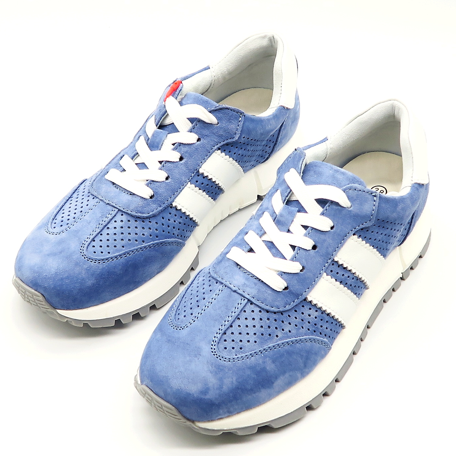 Moderné dámske sneakersy značky GOODIN. Mäkký kožený zvršok s jemnou perforáciou zabezpečuje príjemné nosenie aj počas celého dňa. Svetlomodrá farba v kombinácii s bielymi prvkami pôsobí čisto, sviežo a ľahko sa kombinuje s každodenným outfitom. Pohodlná podrážka s mierne športovým vzhľadom tlmí nárazy pri chôdzi a dodáva stabilitu. Ideálne na bežné nosenie do mesta, práce aj na voľný čas.