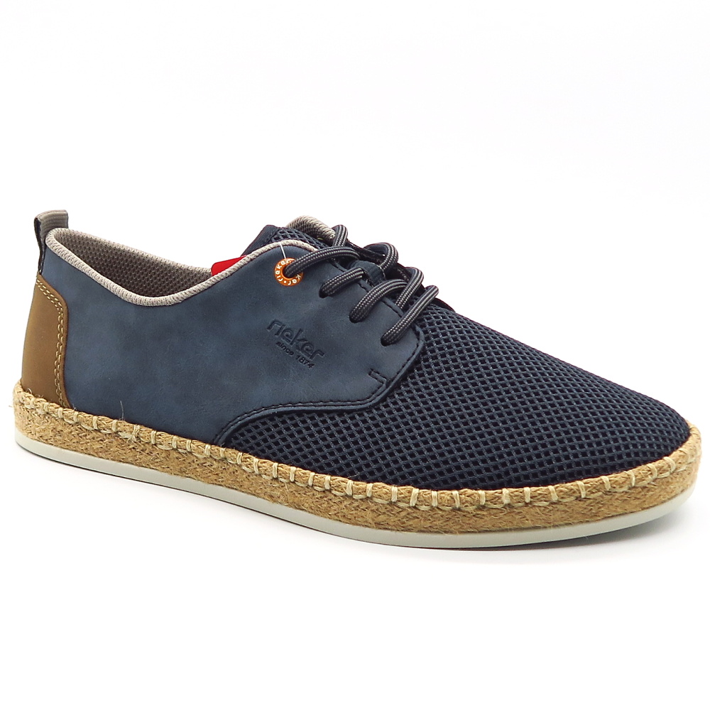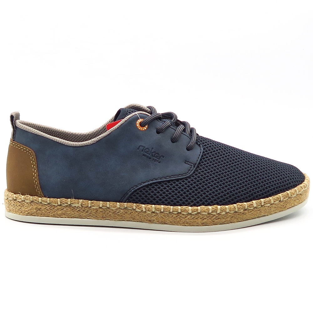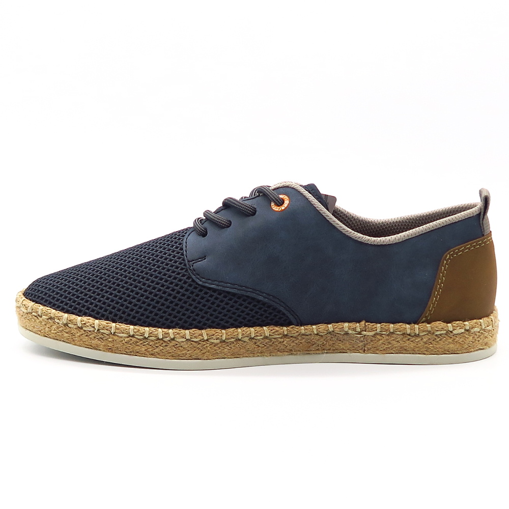 Štýlové a mimoriadne pohodlné pánske poltopánky RIEKER sú ideálnou voľbou na každodenné nosenie počas teplejších dní. Kombinácia priedušného materiálu a jemných syntetických detailov zabezpečuje optimálnu ventiláciu a komfort aj pri celodennom nosení. Ľahká konštrukcia spolu s flexibilnou podrážkou tlmí nárazy a prispôsobuje sa pohybu chodidla, zatiaľ čo šnurovanie umožňuje individuálne nastavenie pre dokonalé obutie. Dizajn dopĺňa moderný prírodný vzhľad podrážky s jutovým efektom.