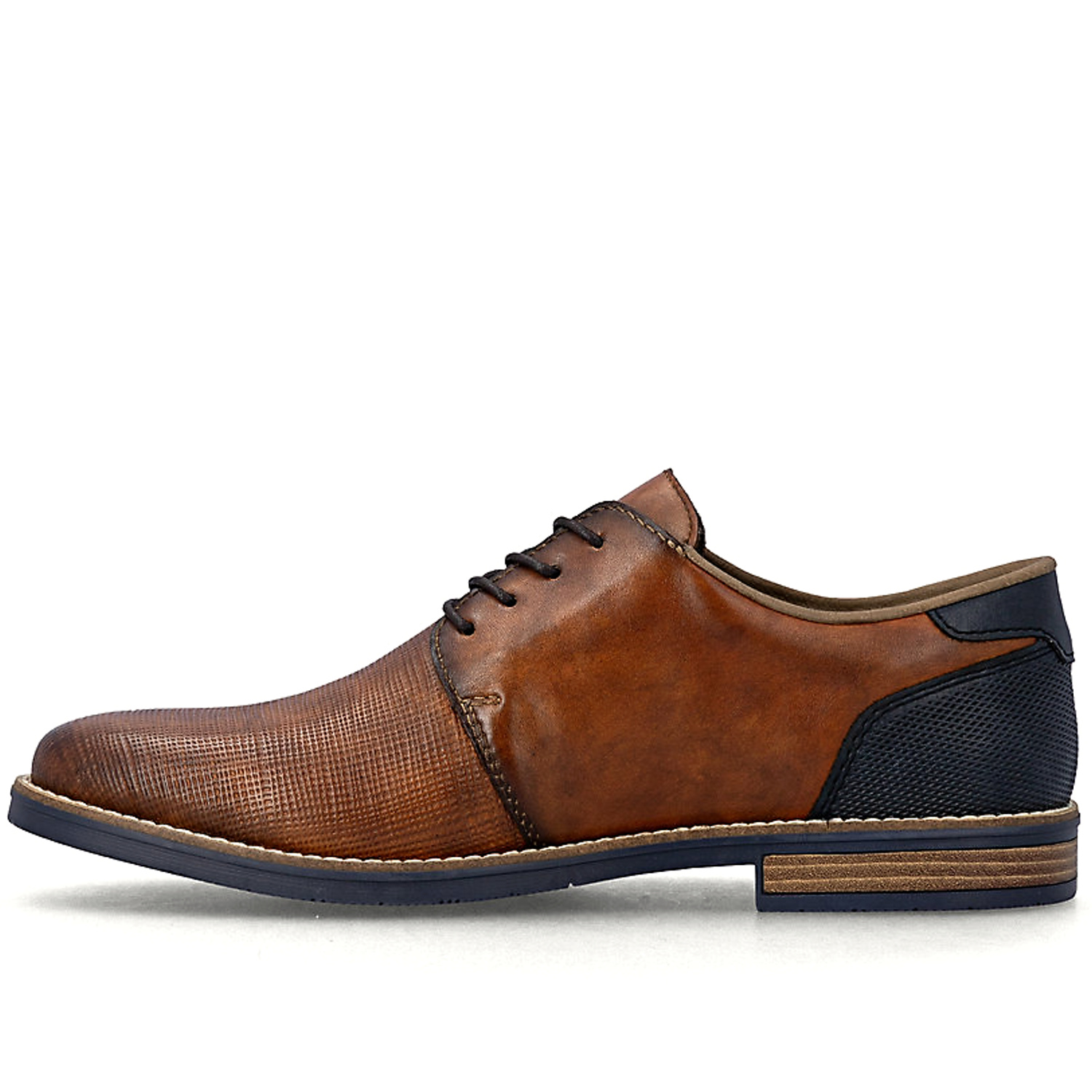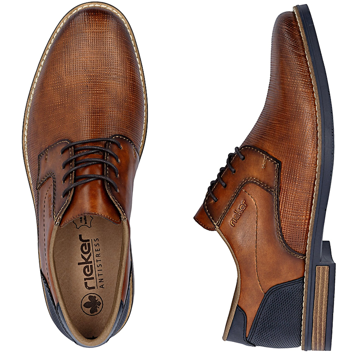 Pánske poltopánky RIEKER v elegantnej hnedej farbe zaujmú nadčasovým dizajnom, ktorý je ideálny na bežné nosenie aj formálnejšie príležitosti. Klasické šnurovanie zabezpečuje dobré prispôsobenie chodidlu a stabilitu pri chôdzi. Vnútorná časť topánky je príjemne mäkko polstrovaná, čo spolu s technológiou RIEKER ANTISTRESS poskytuje vysoký komfort aj pri celodennom nosení. Ľahká a pružná podošva s nízkym podpätkom tlmí nárazy a podporuje prirodzený krok.