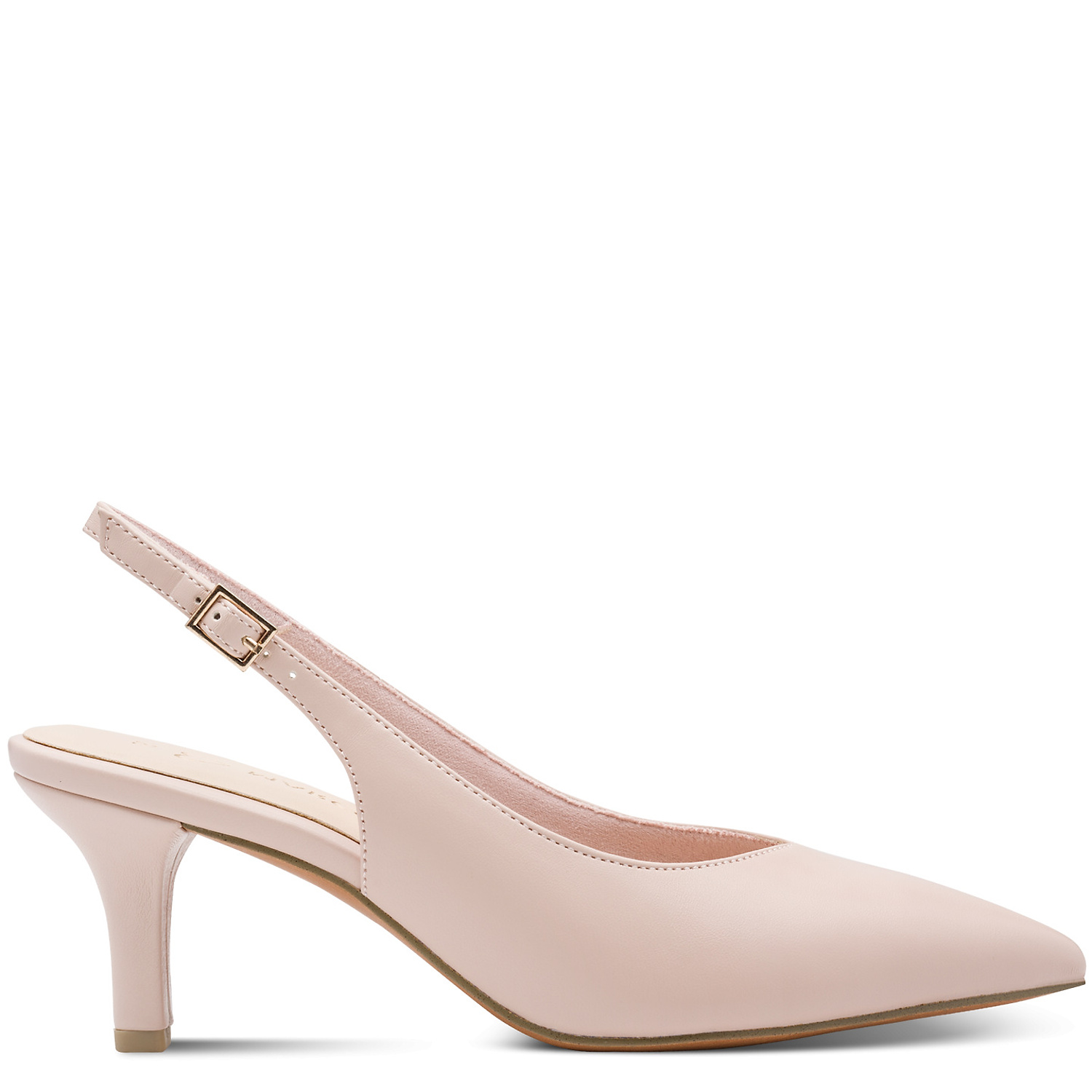 Dámske sandále MARCO TOZZI sú elegantným a nadčasovým kúskom, ktorý by nemal chýbať v šatníku žiadnej ženy. Model v jemnej ružovej farbe, ktorá sa super kombinuje s rôznymi outfitmi. Špicatá špička dodáva topánkam ženský vzhľad a opticky predlžuje nohy. Otvorená päta s jemným nastaviteľným ramienkom zabezpečuje stabilitu chodidla a pohodlné nosenie. Stredne vysoký podpätok ma elegantný tvar a poskytuje komfort počas nosenia.