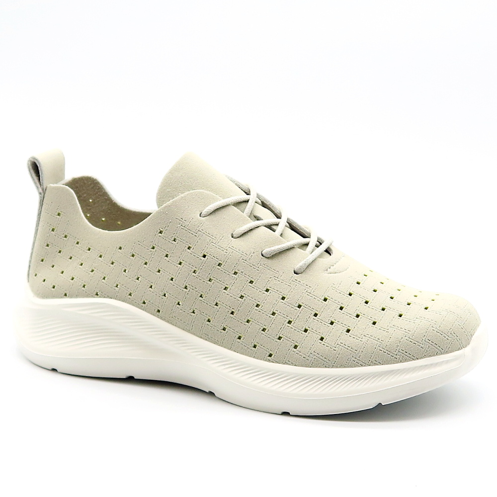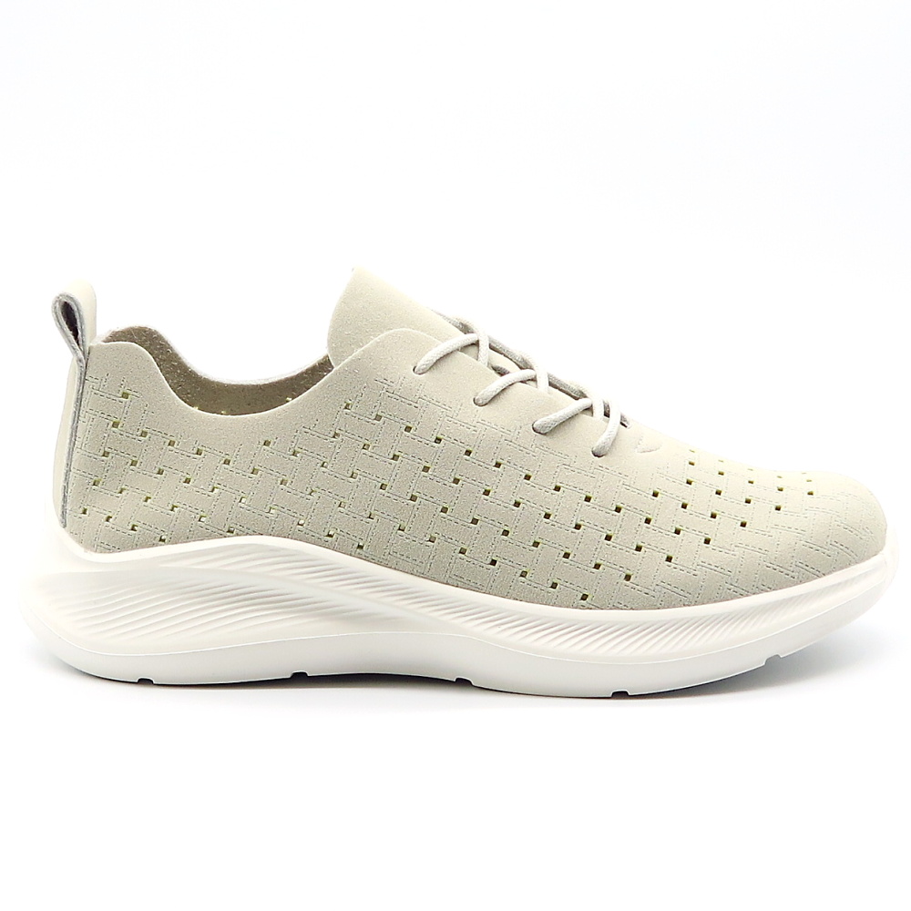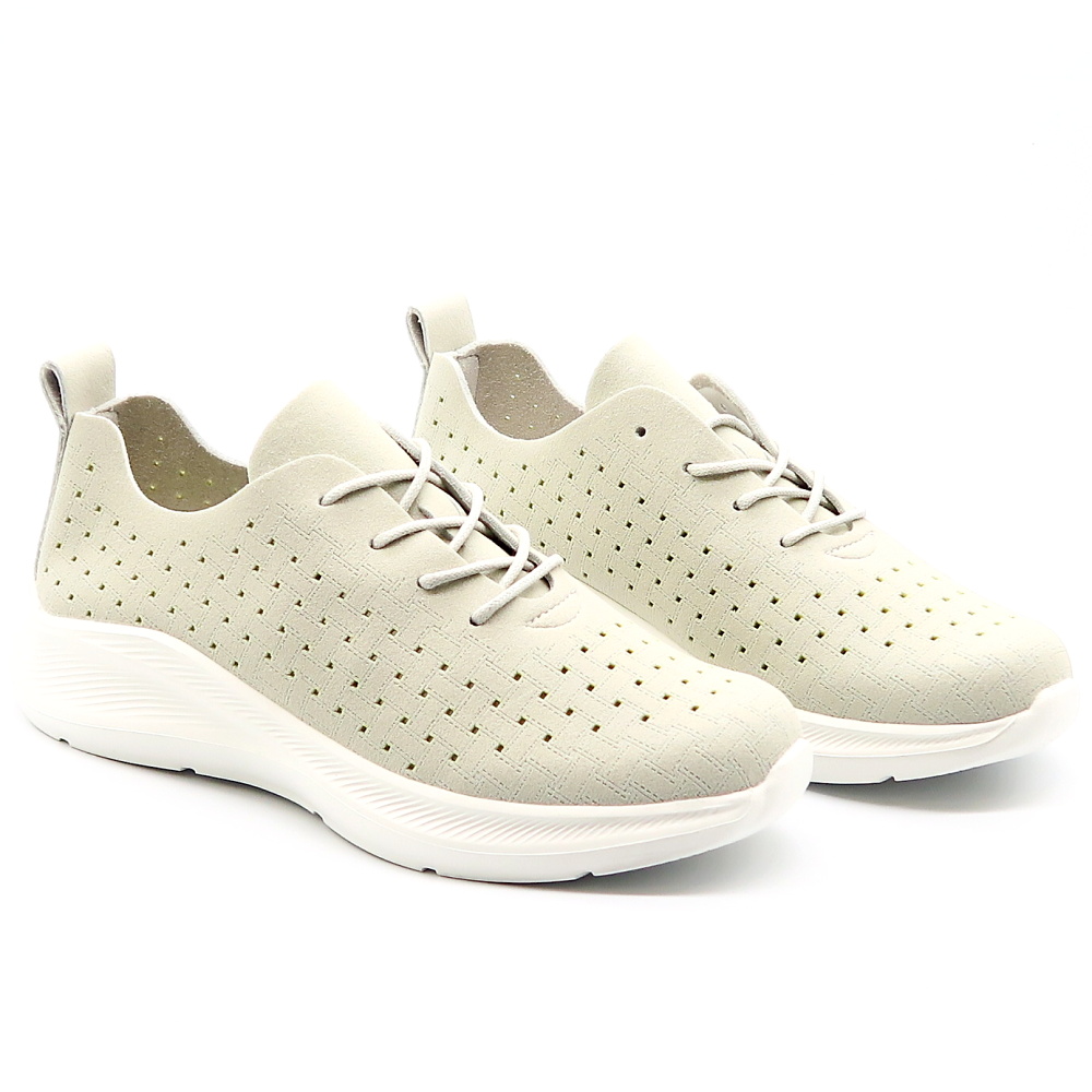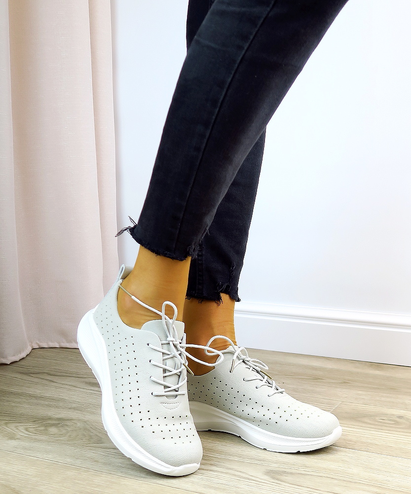 Moderné dámske tenisky navrhnuté pre maximálne pohodlie pri každodennom nosení aj aktívnom pohybe. Ich jednoduchý, čistý dizajn v neutrálnej sivej farbe sa ľahko kombinuje s rôznymi outfitmi. Zvršok je vyrobený z priedušného materiálu, ktorý zabezpečuje dobrú ventiláciu a pohodlie počas celého dňa. Mäkká vnútorná stielka sa prispôsobí chodidlu a poskytuje príjemný pocit pri chôdzi. Ľahká, mierne zvýšená podrážka tlmí nárazy a zvyšuje komfort pri každom kroku.