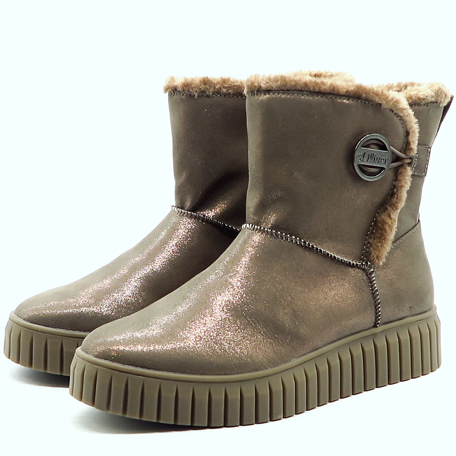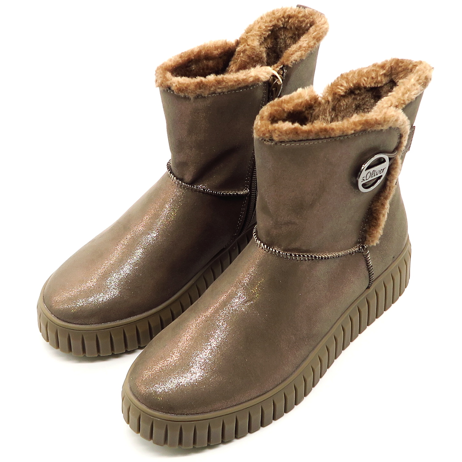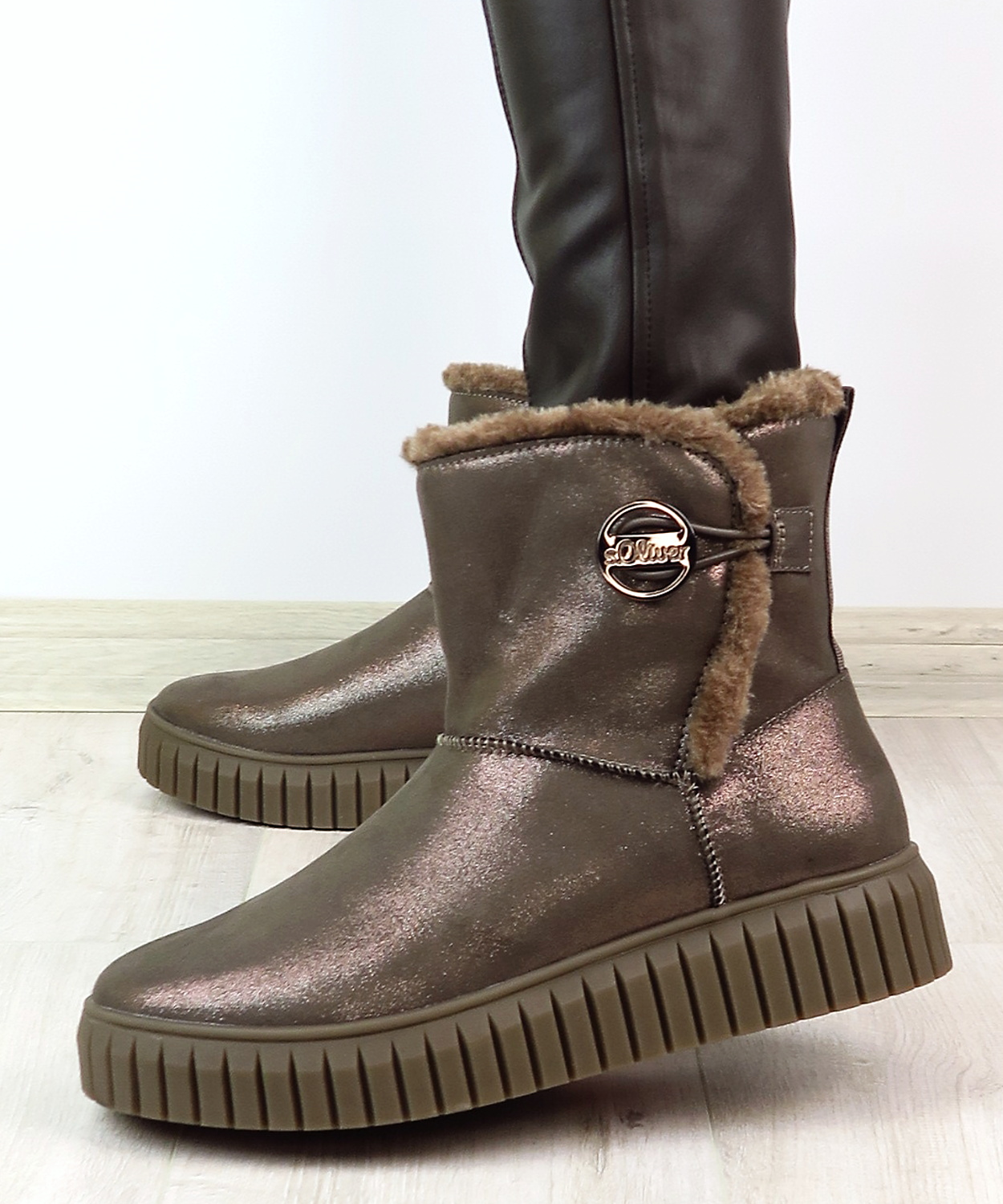Štýlové dámske zimné čižmy S.OLIVER v krásnej medeno-hnedej farbe spájajú pohodlie a moderný dizajn. Sú vyrobené z kvalitného syntetického semišu s jemným povrchom a doplnené mäkkou kožušinovou podšívkou, ktorá udrží vaše nohy v teple počas chladných zimných dní. Vyššia podrážka zabezpečuje istý krok as pôsobí moderným dojmom . Bočnú stranu zdobí ich decentné kovové logo.