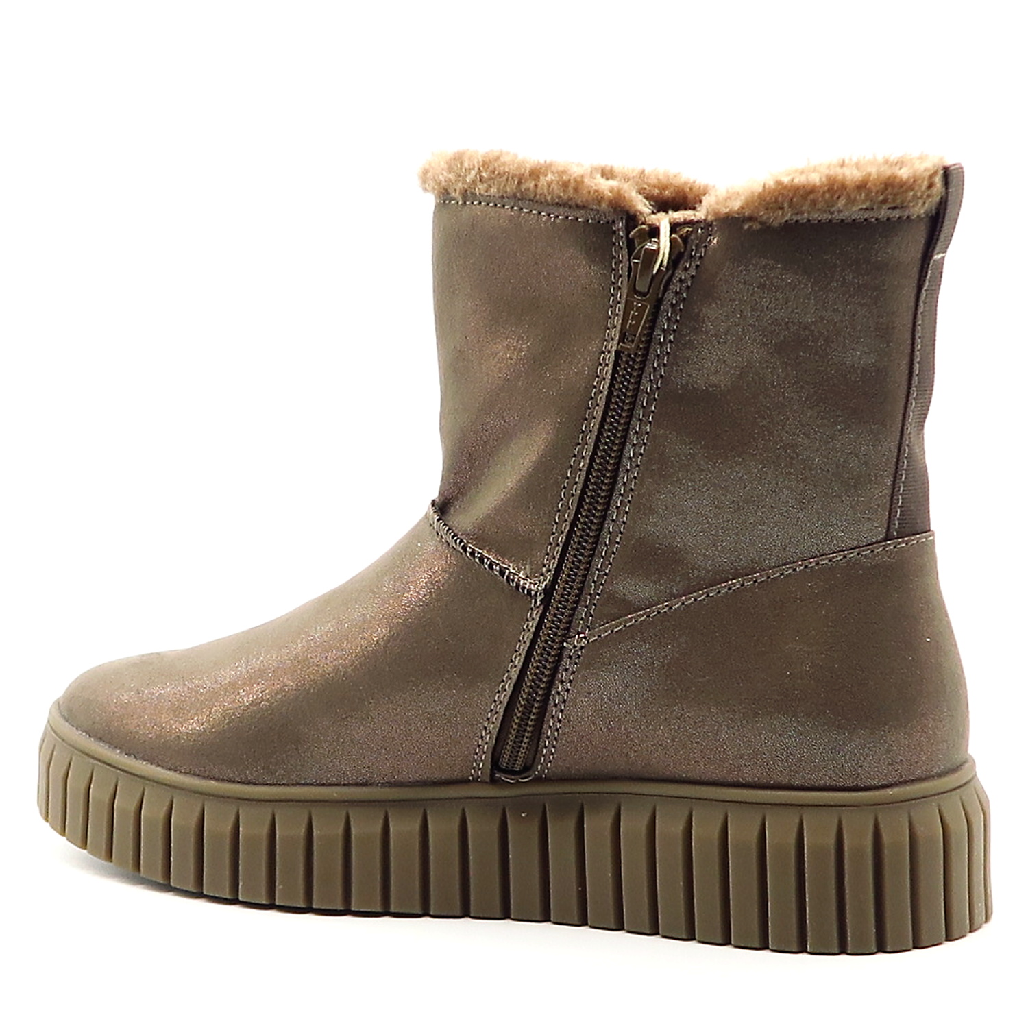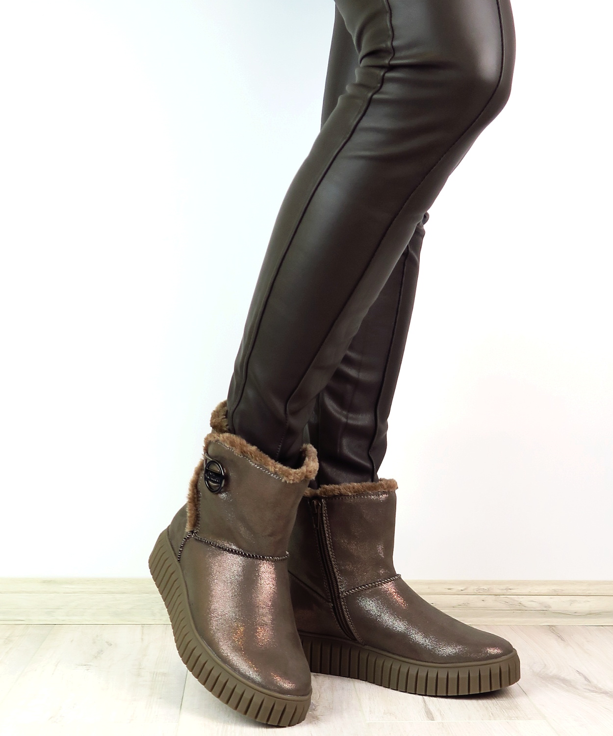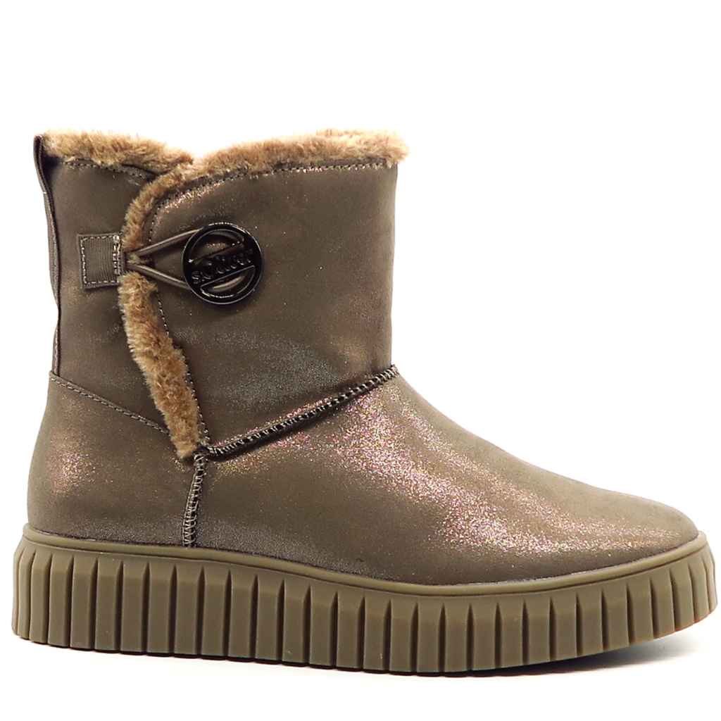 Štýlové dámske zimné čižmy S.OLIVER v krásnej medeno-hnedej farbe spájajú pohodlie a moderný dizajn. Sú vyrobené z kvalitného syntetického semišu s jemným povrchom a doplnené mäkkou kožušinovou podšívkou, ktorá udrží vaše nohy v teple počas chladných zimných dní. Vyššia podrážka zabezpečuje istý krok as pôsobí moderným dojmom . Bočnú stranu zdobí ich decentné kovové logo.