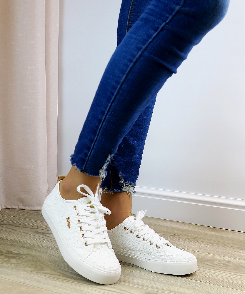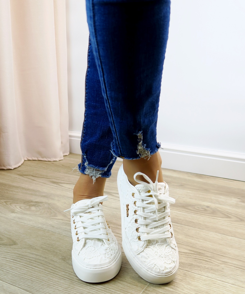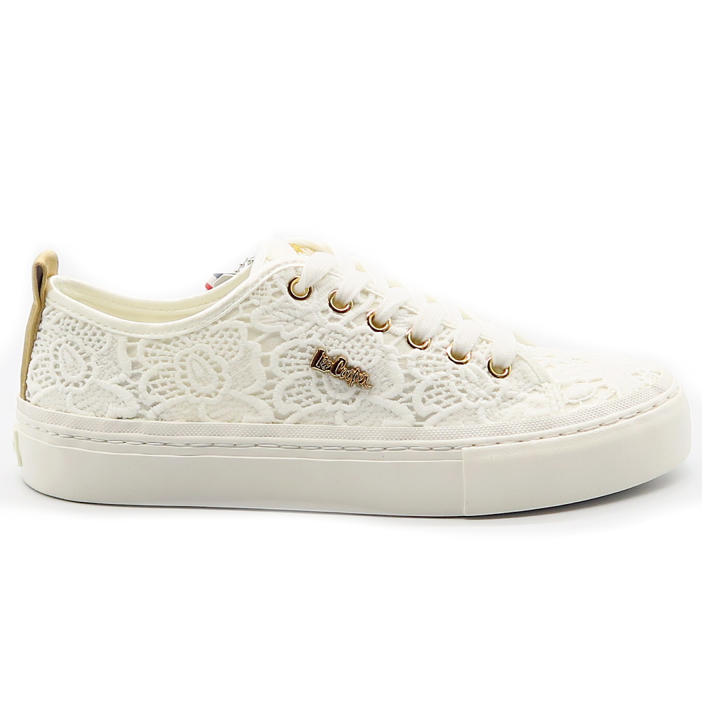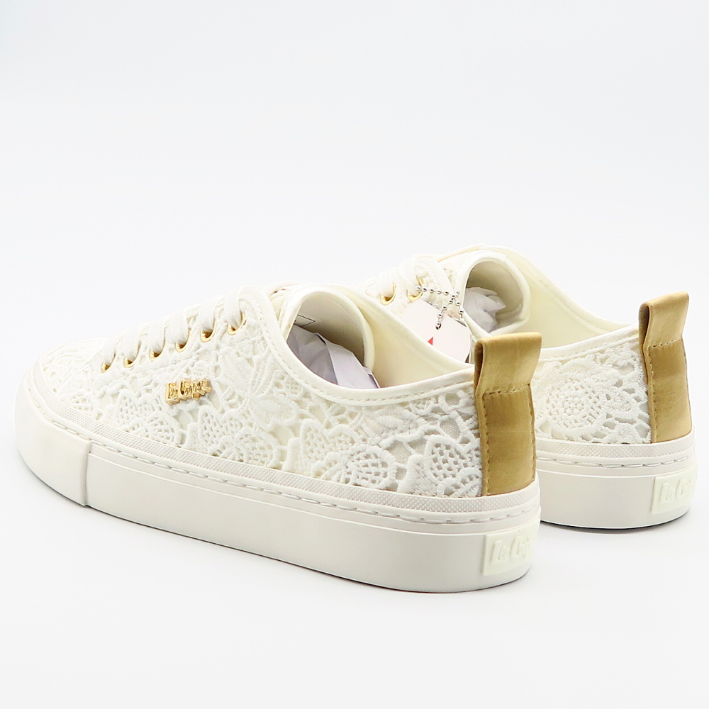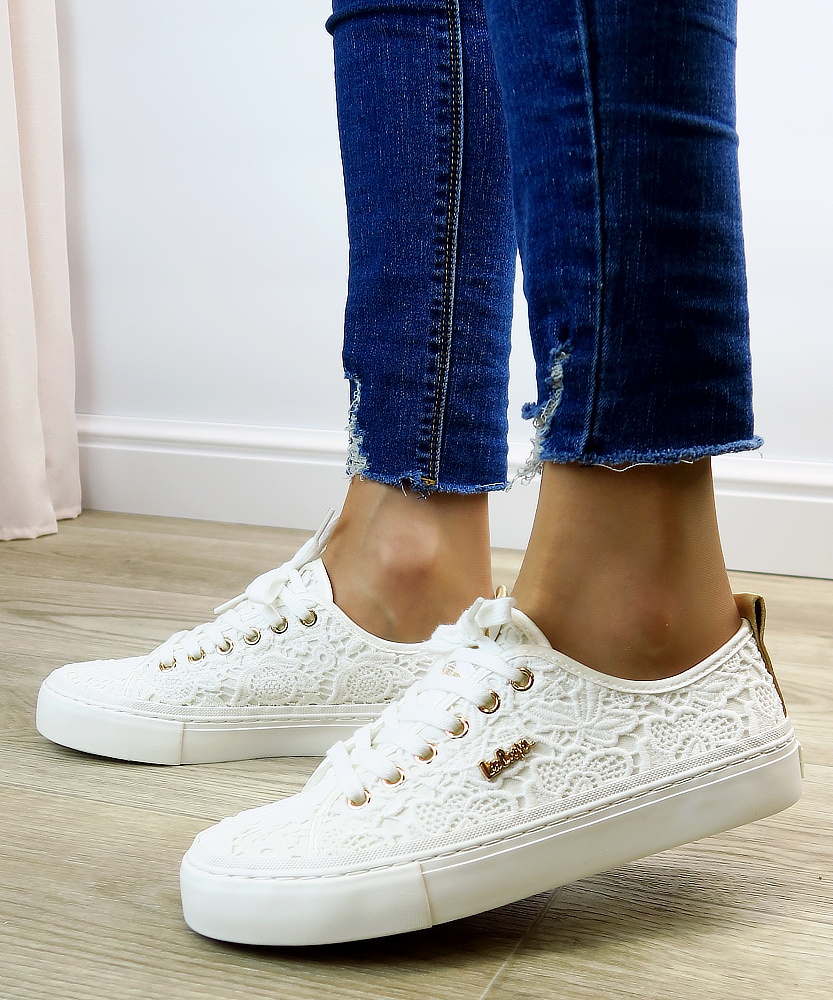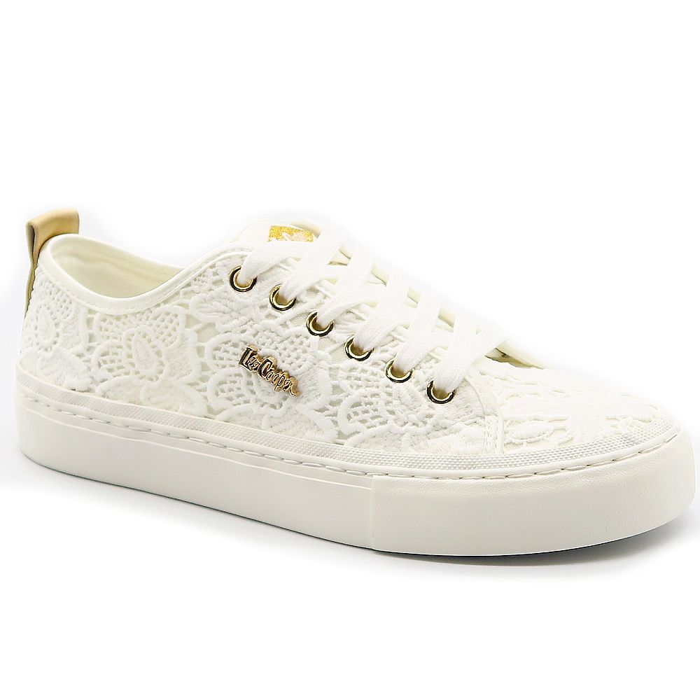 Biele čipkované tenisky LEE COOPER sú elegantným a romantickým doplnkom pre že, ktoré milujú jemný, no zároveň trendy štýl. Zvršok je vyrobený z jemnej čipky, ktorá dodáva topánkam ženskosť a ľahkosť. Biela nízka podrážka poskytuje stabilitu a komfort pri chôdzi. Tenisky sú doplnené klasickým šnurovaním a decentným logom LEE COOPER na bočnej strane. Tento model je ideálny na letné dni.