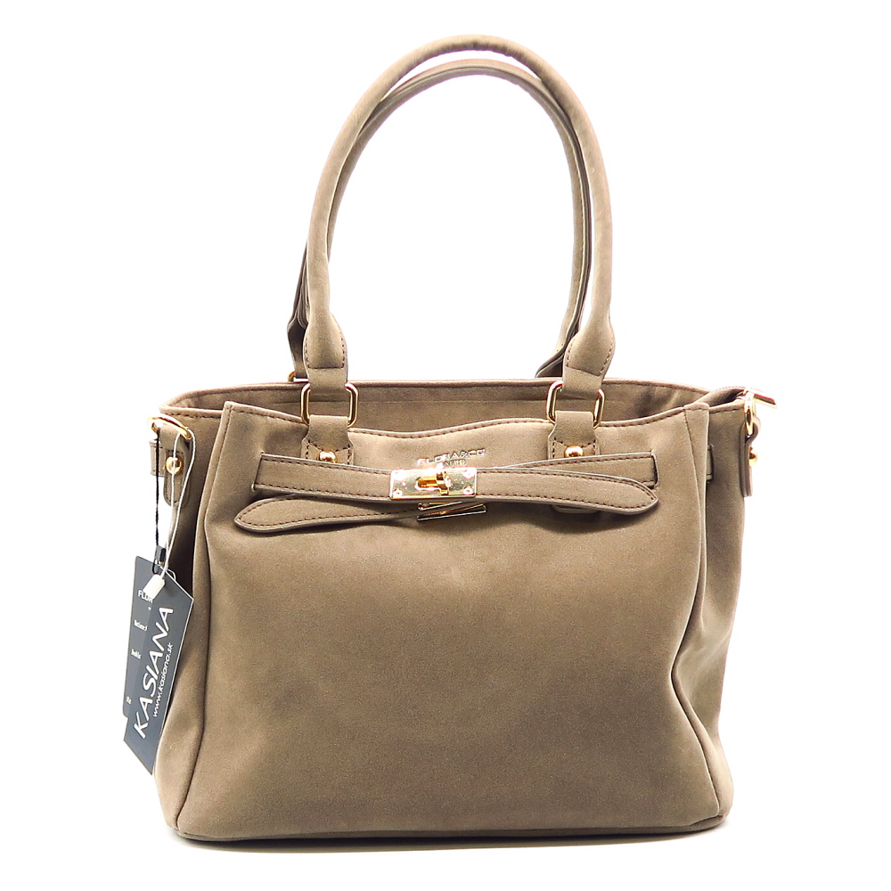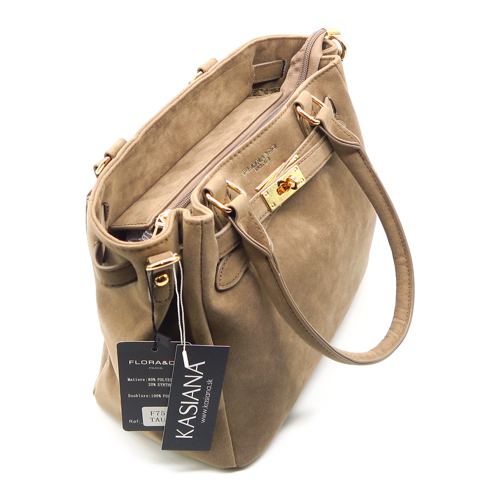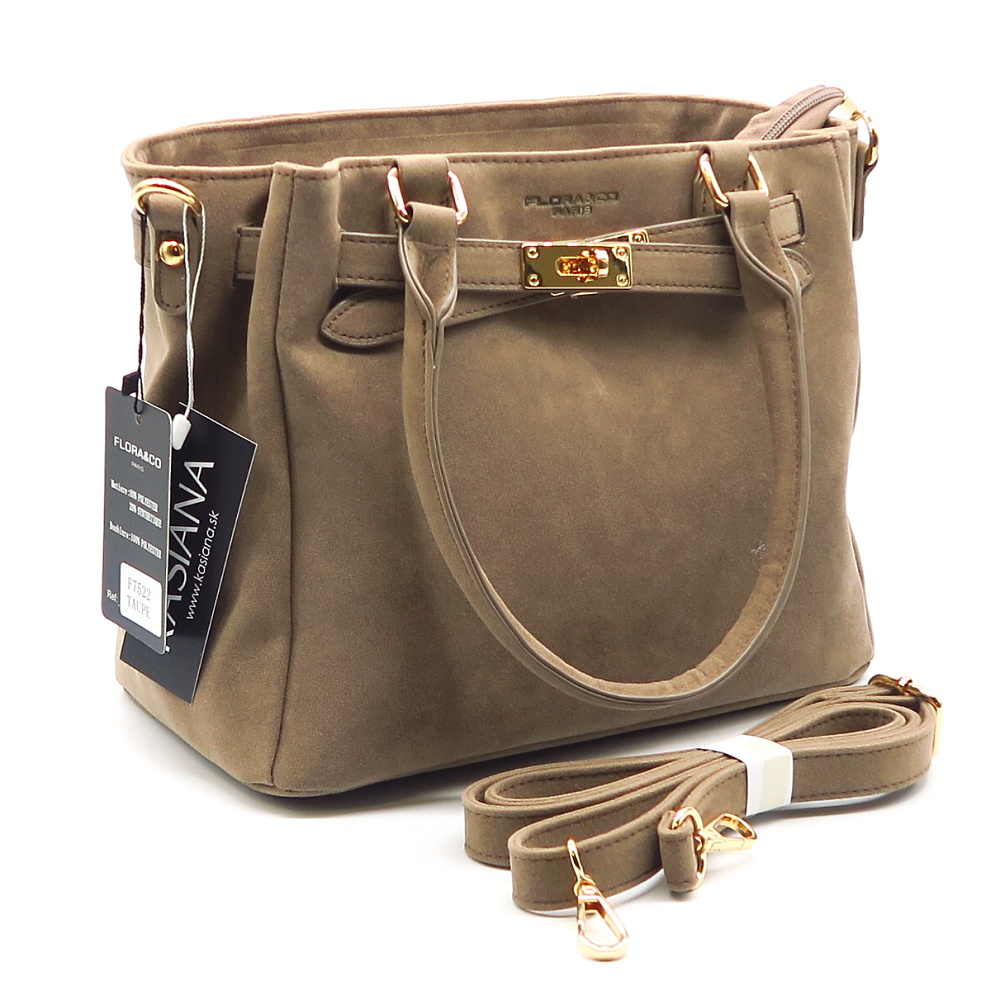 Trendy kabelka značky FLORA&CO . Model v tmavo-béžovej farbe. Zvršok vyrobený z ekologickej kože.