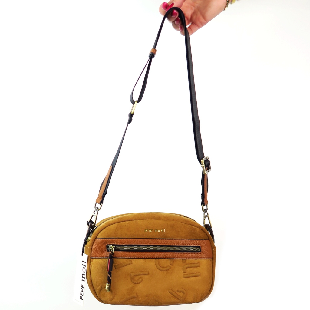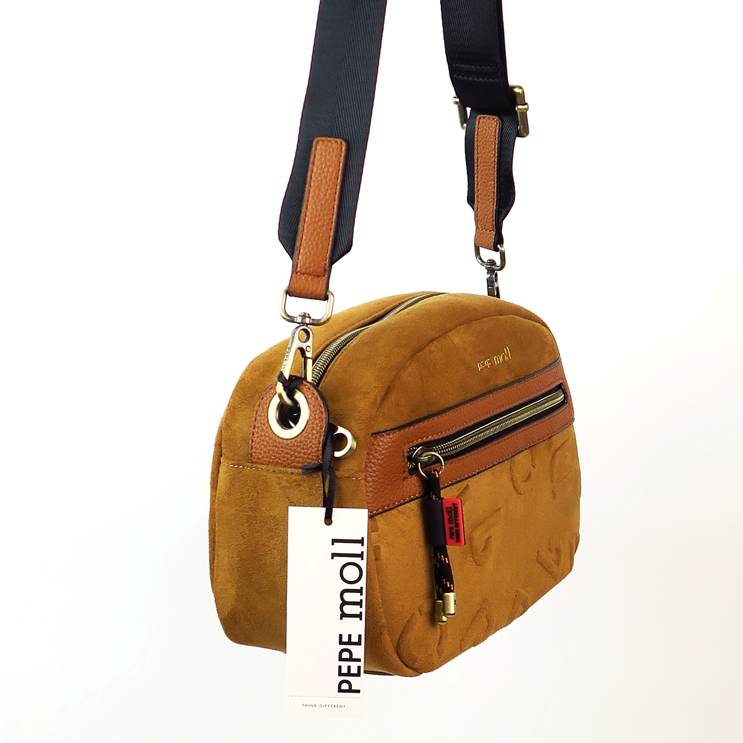 Kvalitná kabelka značky PEPE MOLL. Model v tmavo- béžovej farbe. Zvršok vyrobený z textilného materiálu a ekologickej kože.