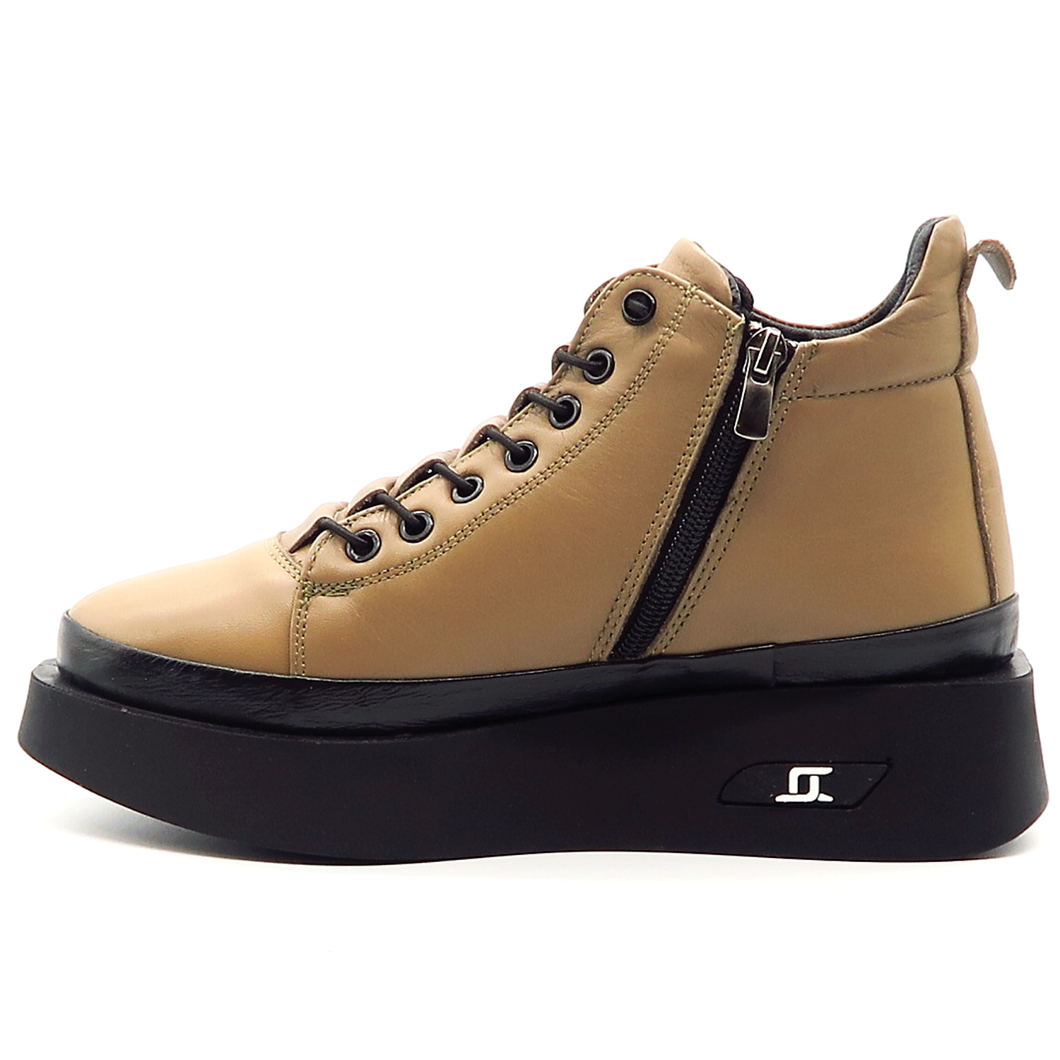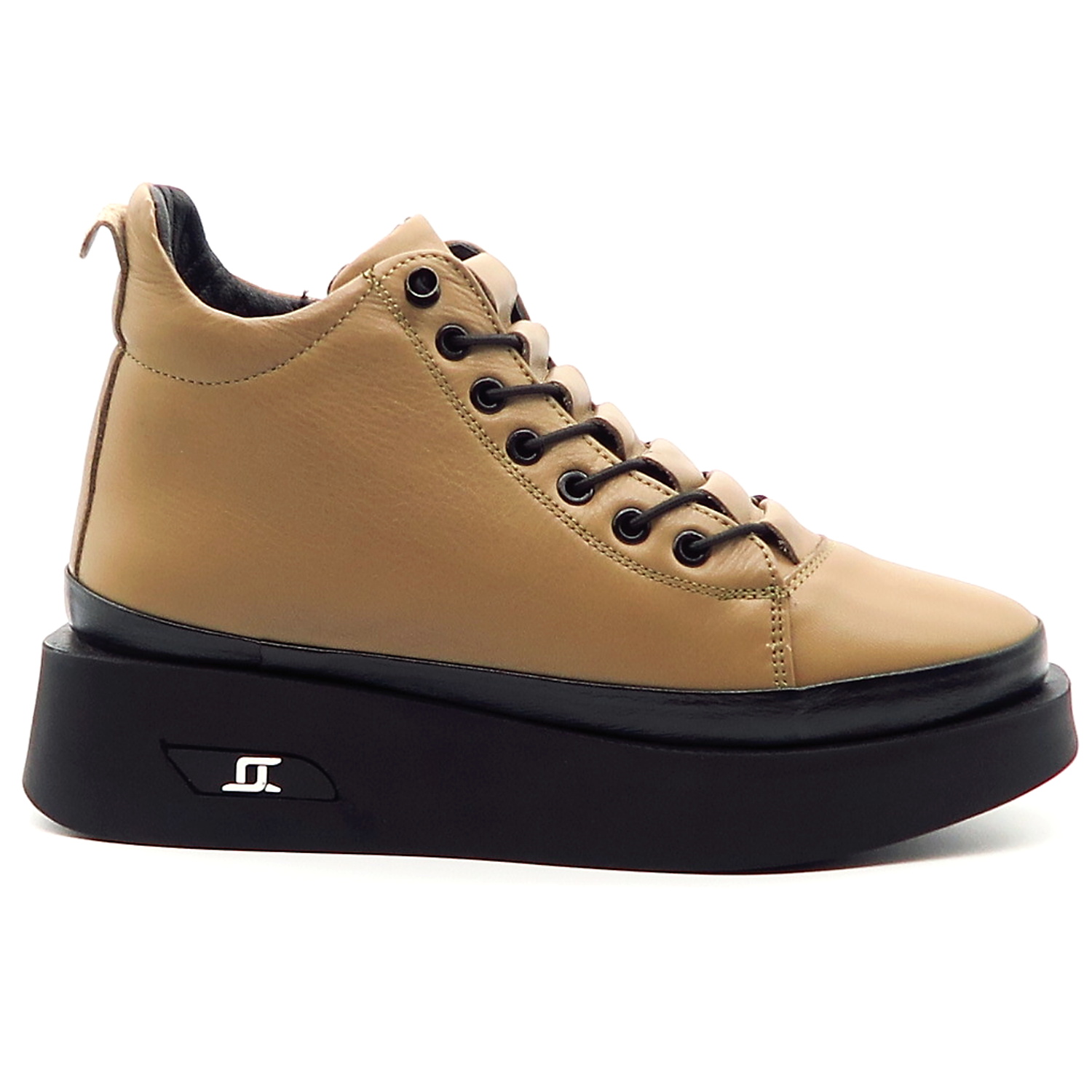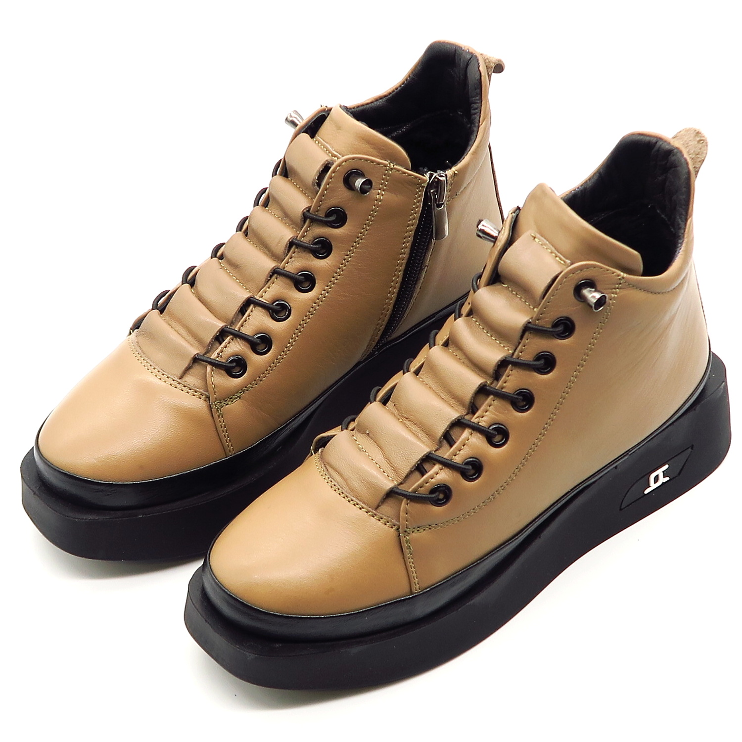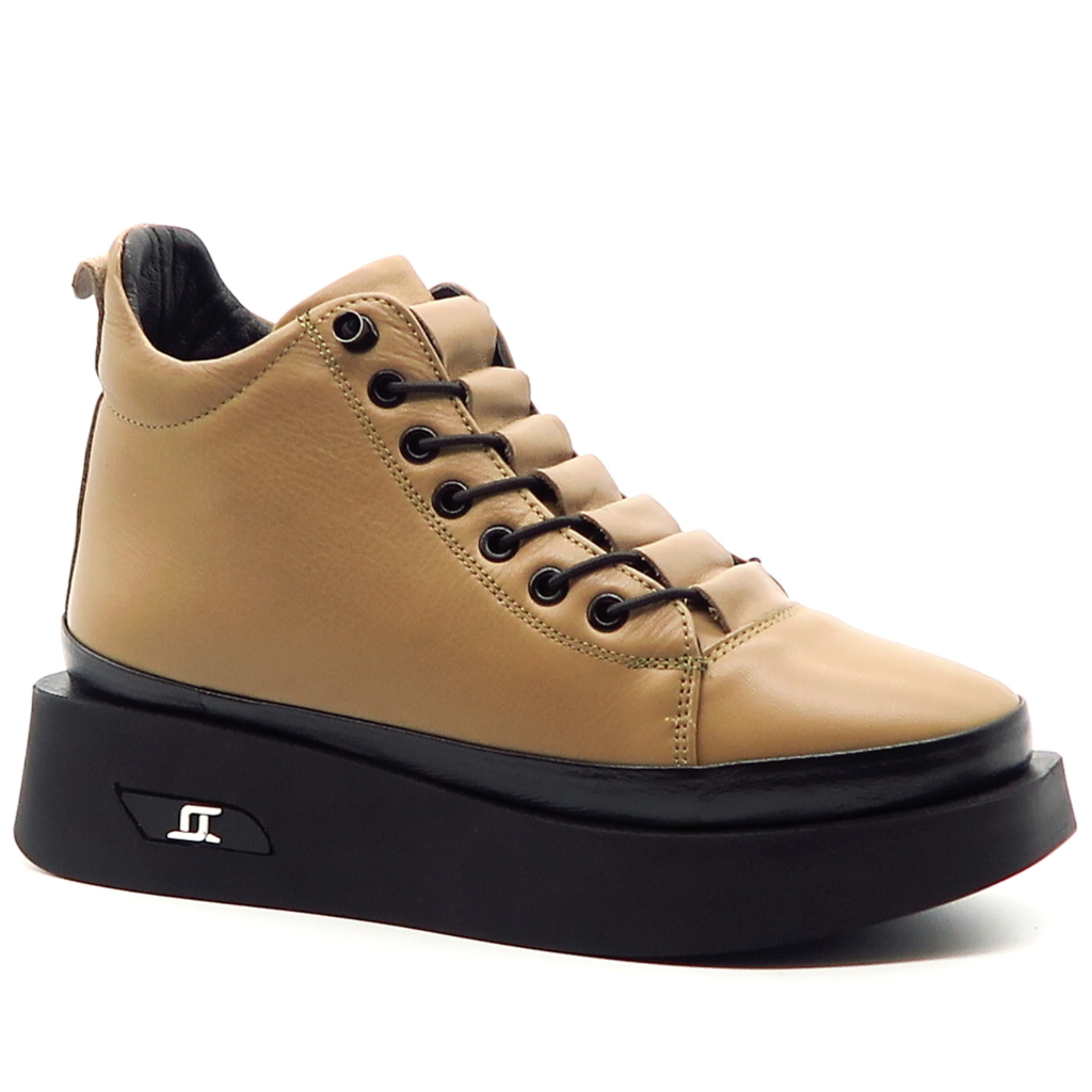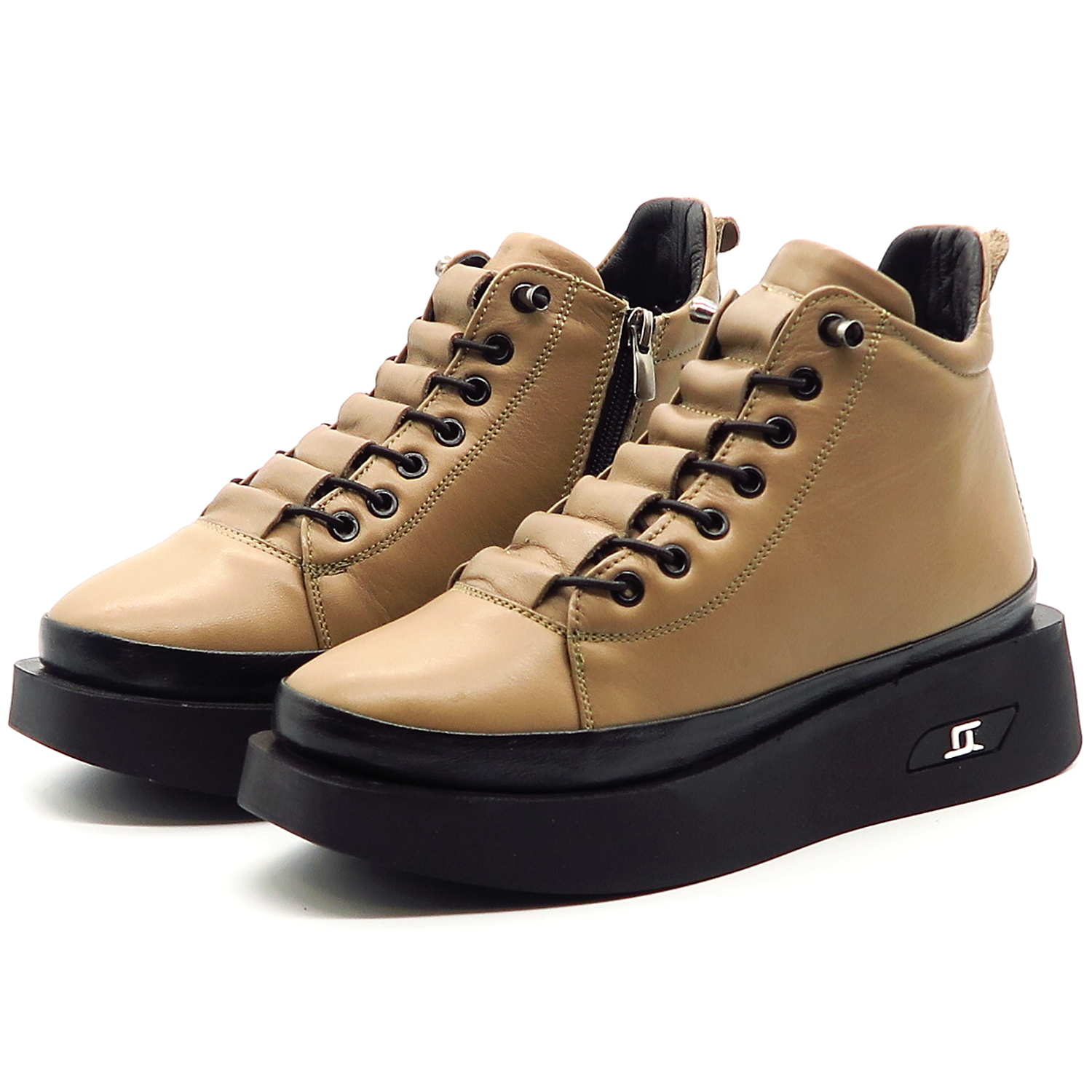 Táto dámska obuv zaujme moderným dizajnom a zároveň pohodlným spracovaním. Zvršok v béžovej farbe pôsobí elegantne a ľahko kombinuje s rôznym oblečením. Predná časť je doplnená praktickým elastickým šnurovaním, ktoré sa jednoducho prispôsobí chodidlu a uľahčuje obúvanie. Vysoká čierna podrážka dodáva topánke štýlový vzhľad a zároveň poskytuje stabilitu aj pri celodennom nosení. Vďaka vnútornému zatepleniu budú vhodné aj do chladnejšieho počasia. Topánky sa vyznačujú svojou ľahkosťou. Odporúčame zvoliť MENŠIU VEĽKOSŤ!