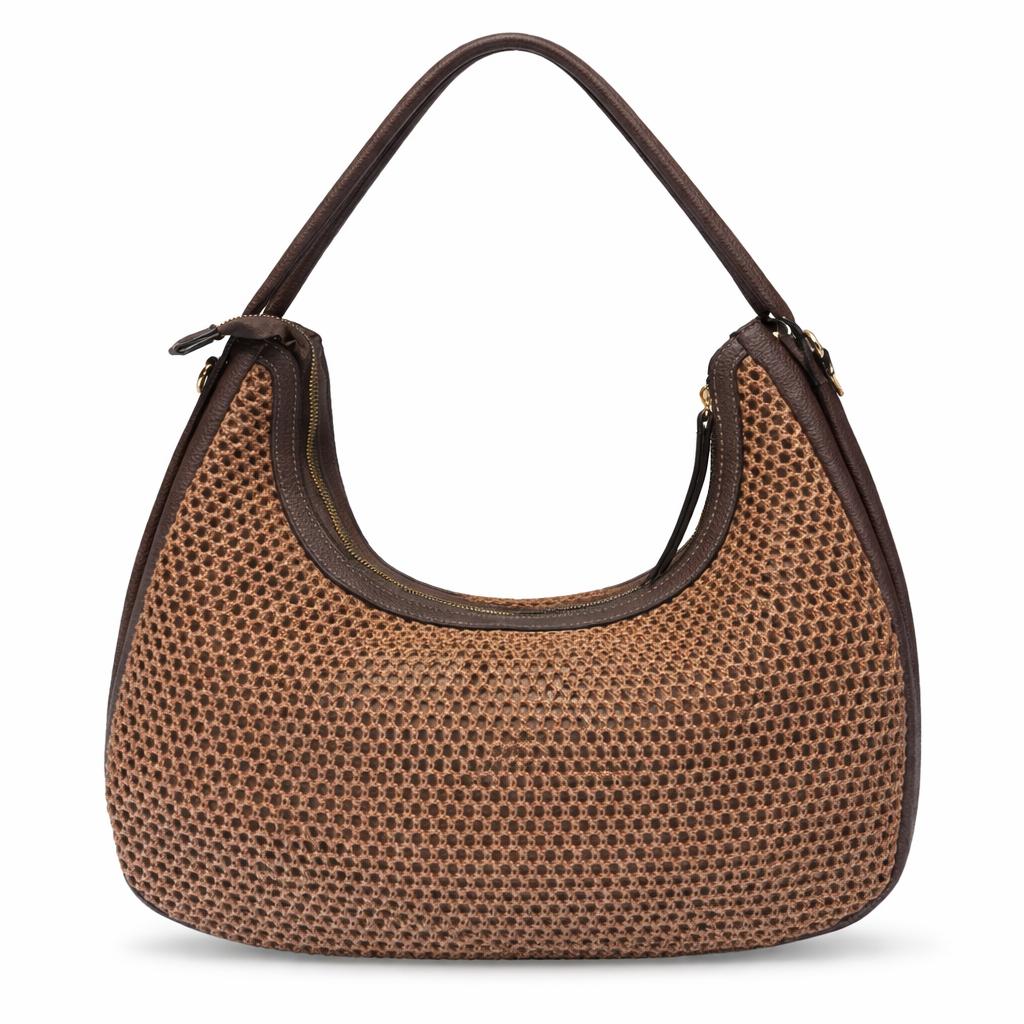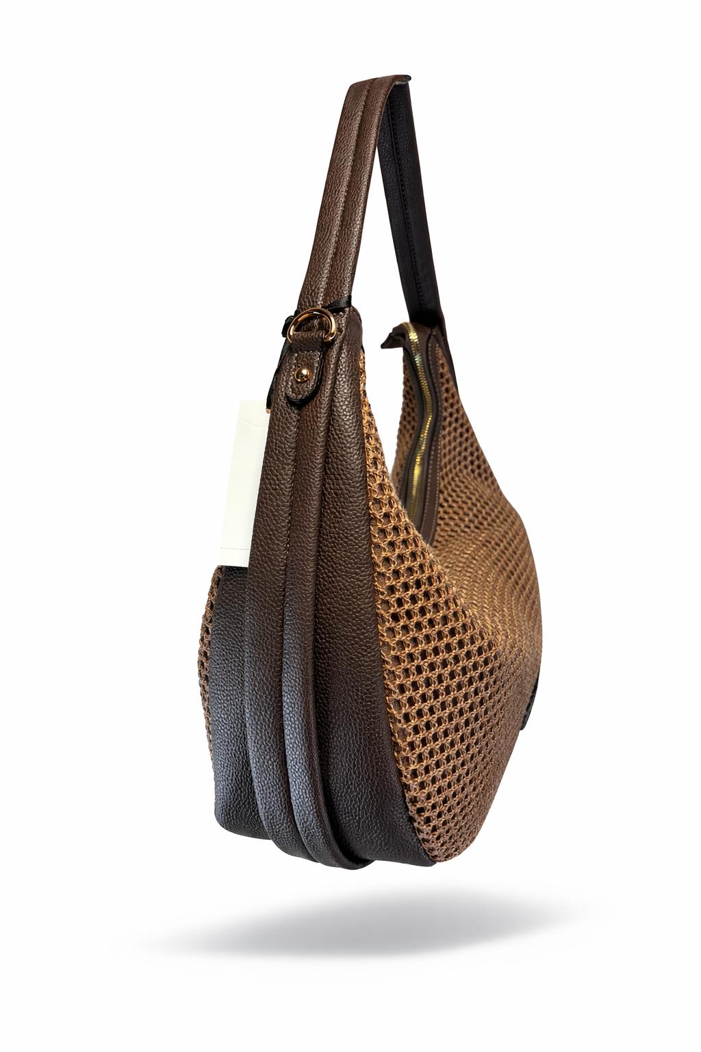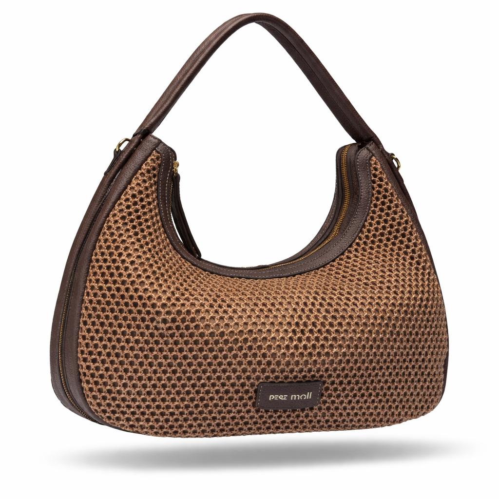 Kvalitná kabelka od značky PEPE MOLL. Model v tmavohnedej farbe. Zvršok vyrobený z ekologickej kože a textilu.