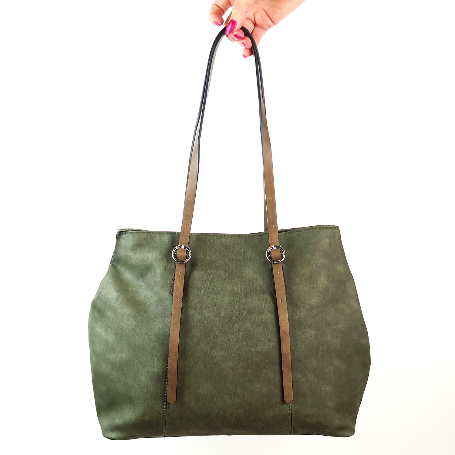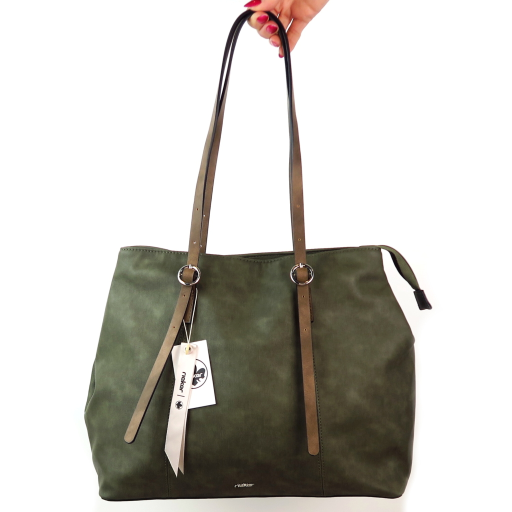 Kvalitná kabelka nemeckej značky RIEKER. Model v zelenej farbe. Zvršok vyrobený z ekologickej kože.