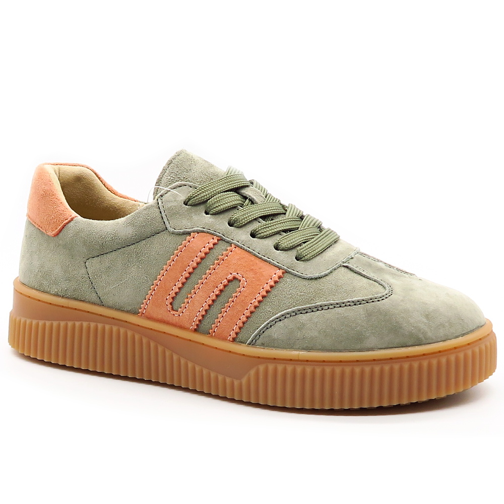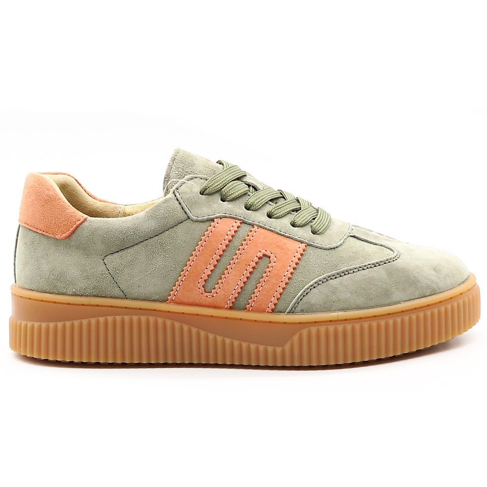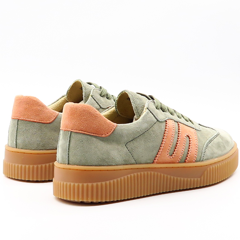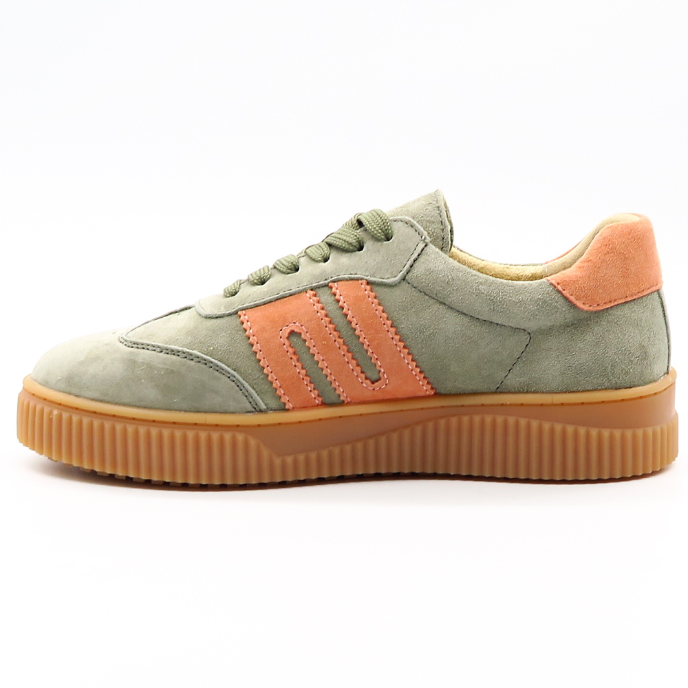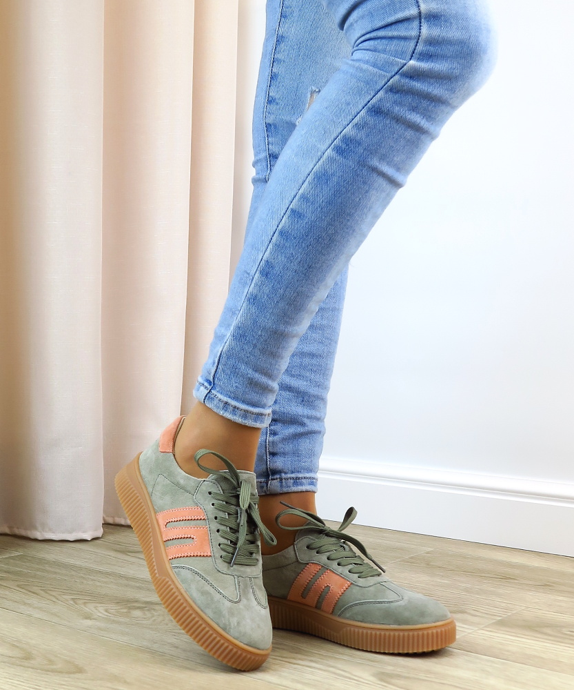 Tieto štýlové dámske tenisky sú ideálnou voľbou pre ženy, ktoré hľadajú kombináciu pohodlia, kvality a moderného dizajnu. Obuv je vyrobená z prírodnej kože v jemnej zelenej farbe, ktorá pôsobí neutrálne a ľahko sa kombinuje s rôznymi outfitmi. Ružové detaily na bokoch a v oblasti päty dodávajú teniskám ženský a trendy nádych, vďaka čomu zaujmú na prvý pohľad. Výrazná podrážka s vrúbkovaným vzorom poskytuje stabilitu a komfort počas nosenia.