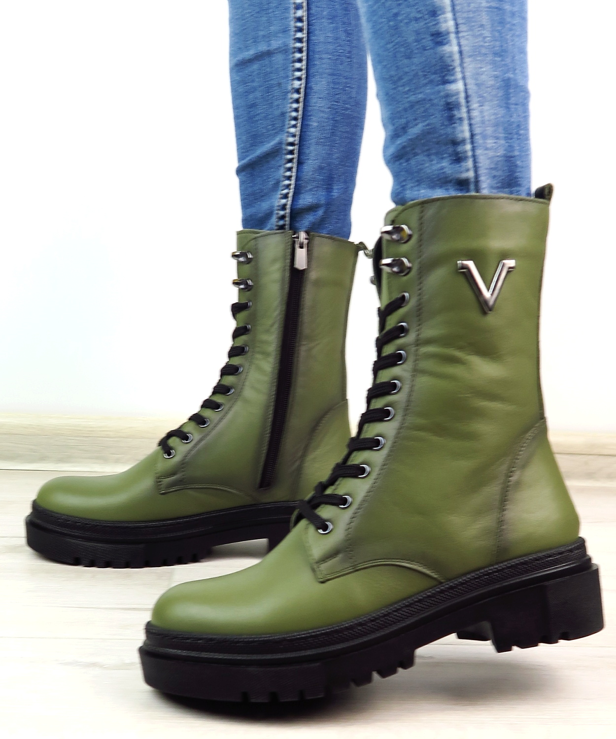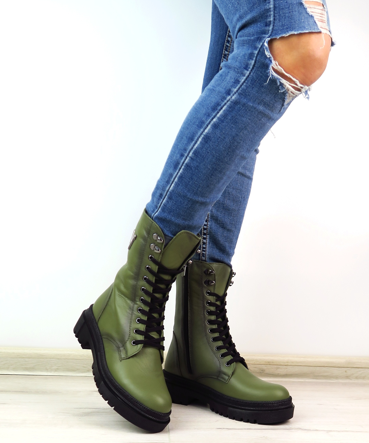 Dámske trendové workery značky KLOP. Model vo výraznej zelenej farbe, ktorá oživí nejeden outfit. Zvršok vyrobený z prírodnej kože. Bočnú časť zdobí strieborná aplikácia v tváre V. Počas chladných zimných dni Vás bude hriať vnútorná kožušinka. Dizajn, ktorý pôsobí moderne a štýlovo. Zapínanie – šnurovanie, ale aj bočný zips.