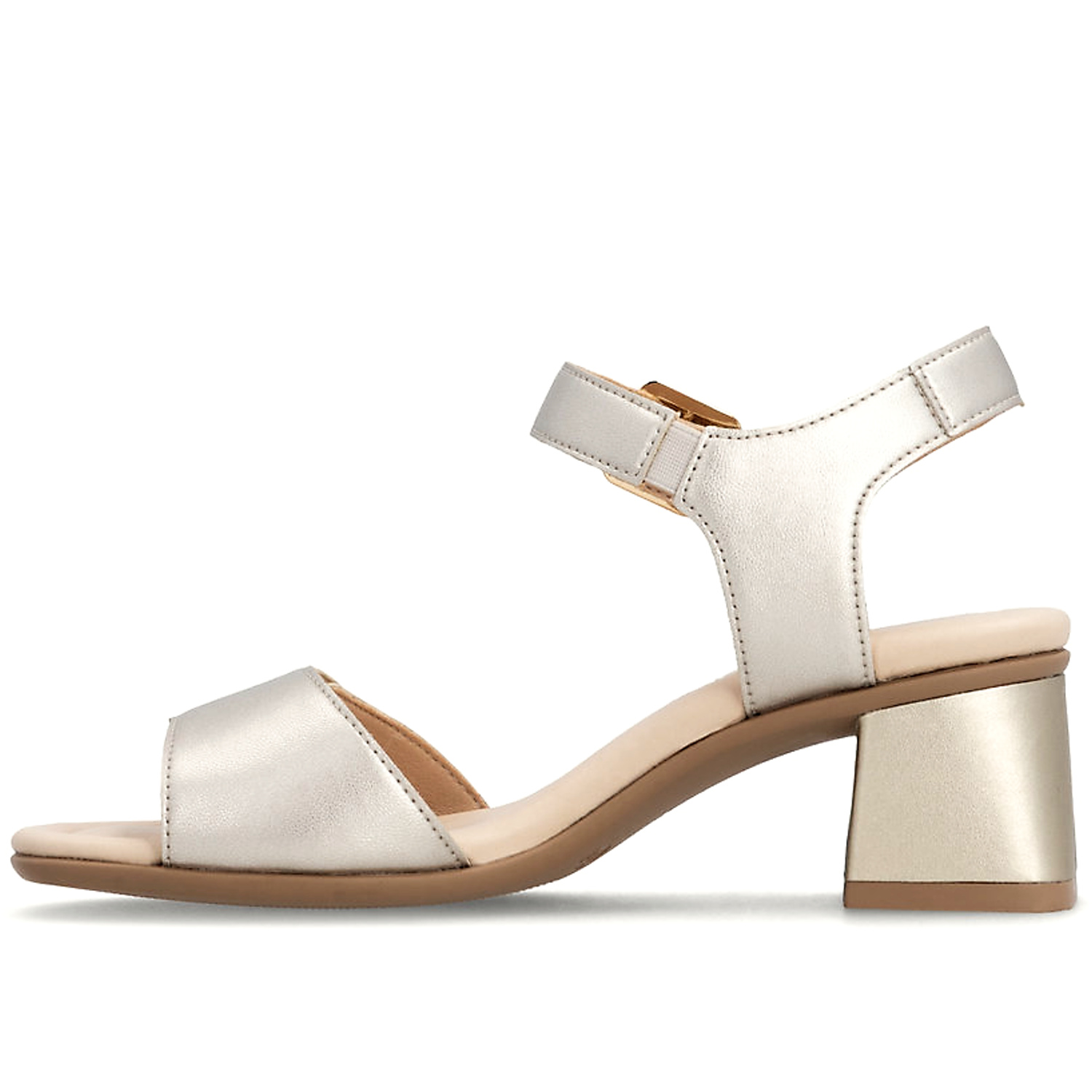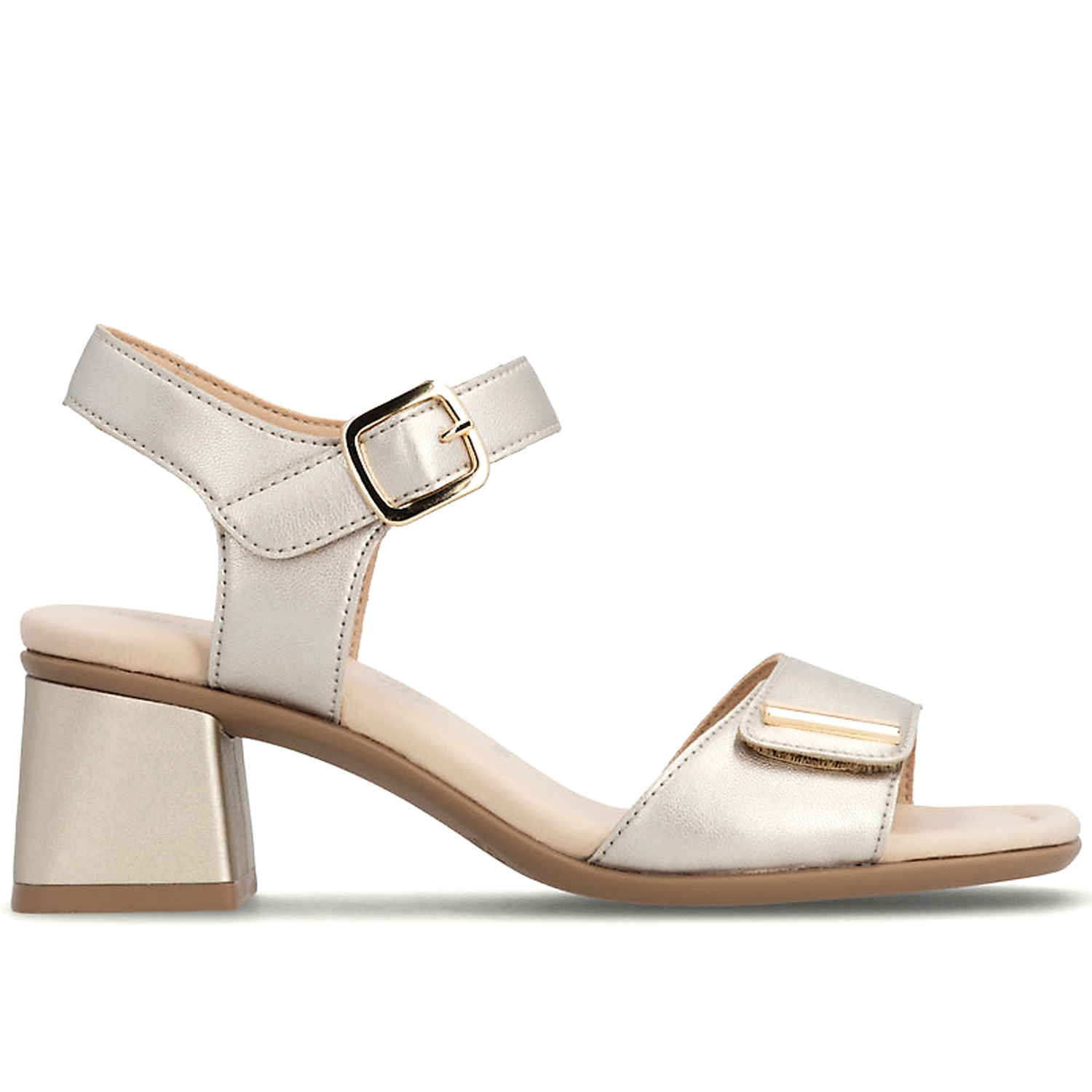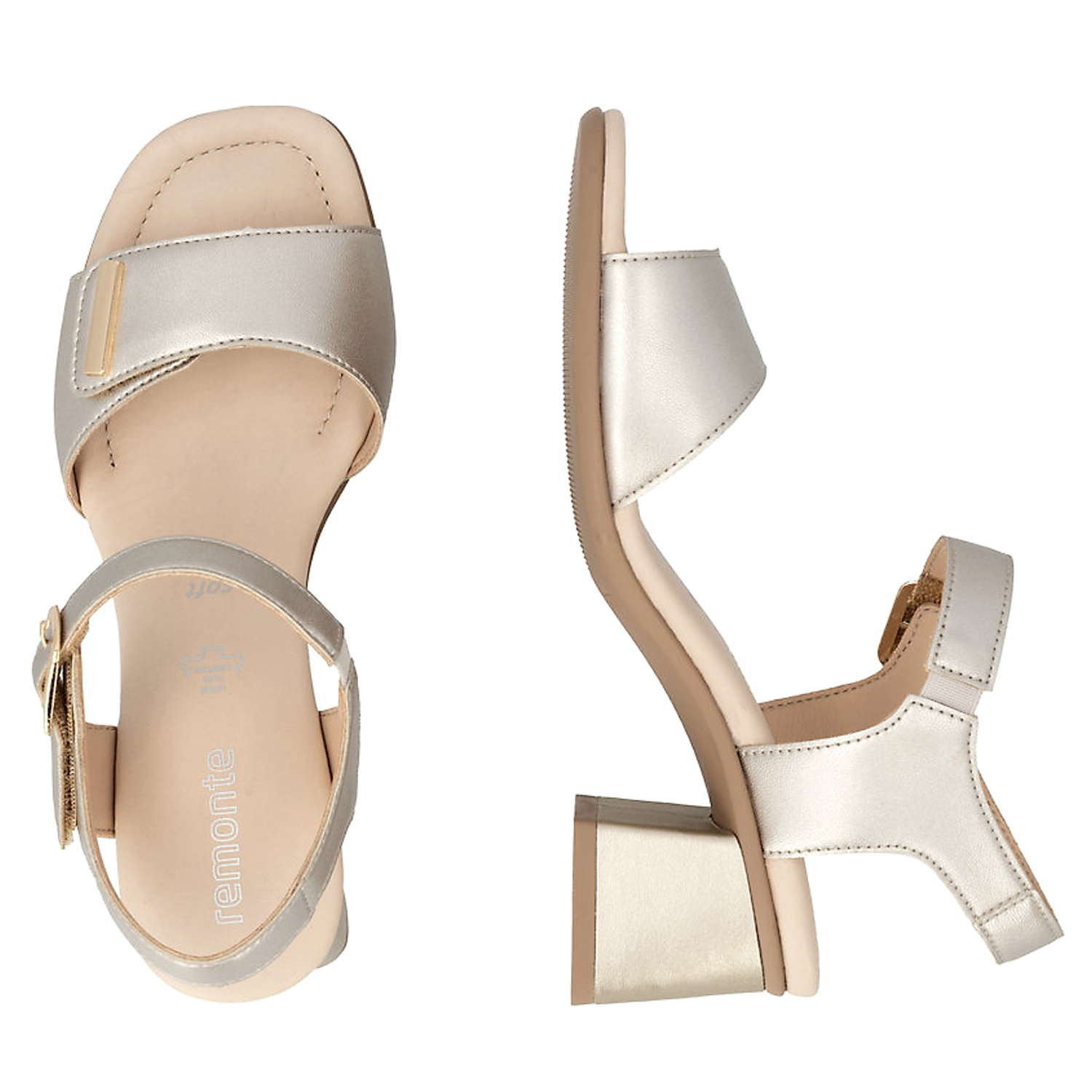 Elegantné dámske sandále značky REMONTE sú ideálnou kombináciou štýlu a pohodlia. Model v krásnom zlatom prevedení, ktorá pekne oživí nejeden outfit. Stabilný hrubší podpätok poskytuje istotu pri chôdzi a zároveň opticky predlžuje siluetu. Mäkká stielka zaručuje komfort aj pri dlhšom nosení, zatiaľ čo nastaviteľný ramienok s pracou umožňuje dokonalé prispôsobenie nohe. tieto sandále sú vhodné do práce, na spoločenské príležitosti aj na letné večery. Vhodné na širšie chodidlá.
